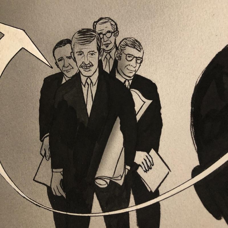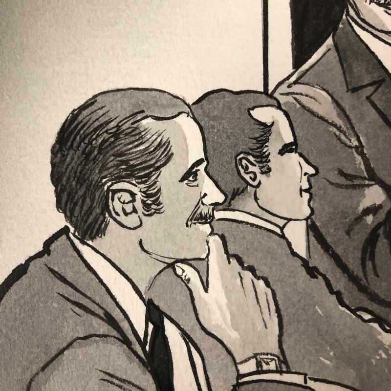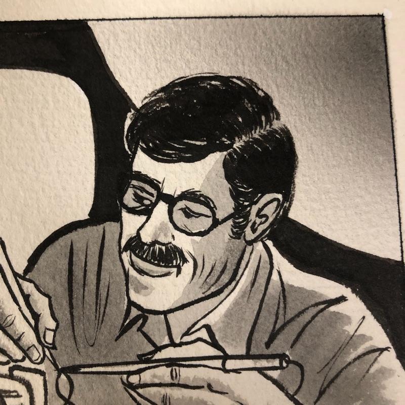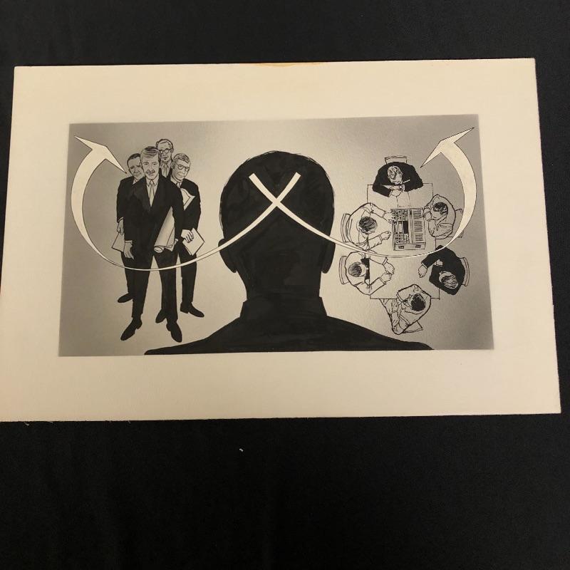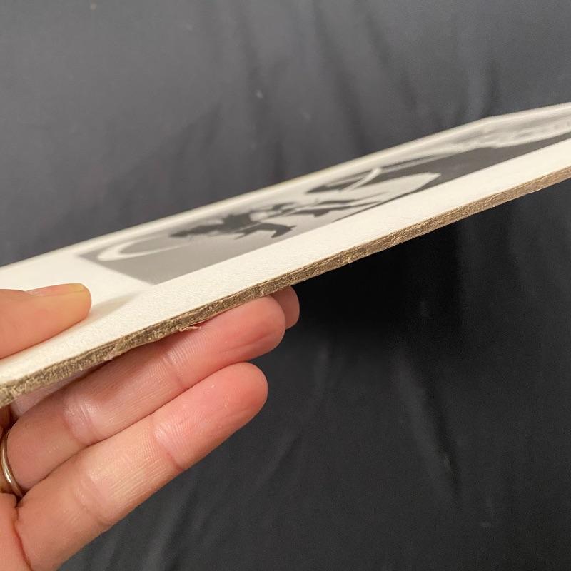 This lot includes four black and white images on paper on board. They all measure about 15” x 10”. They seem to be drawings using watercolor and pen/marker and have a sticker saying J. Frederic who is likely the artist. They are unsigned. They also come with thin paper coverings for protection.