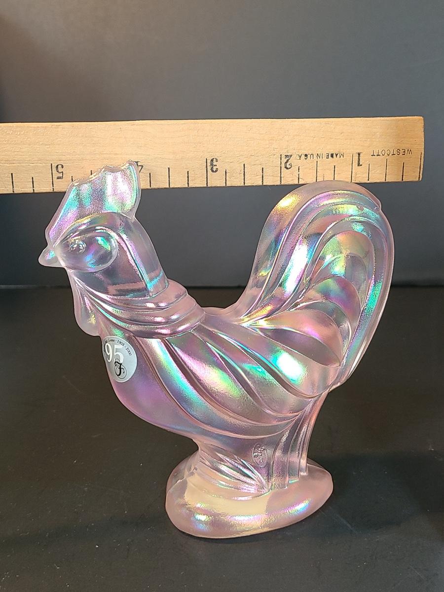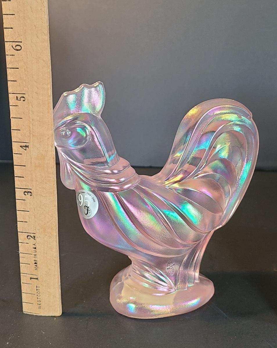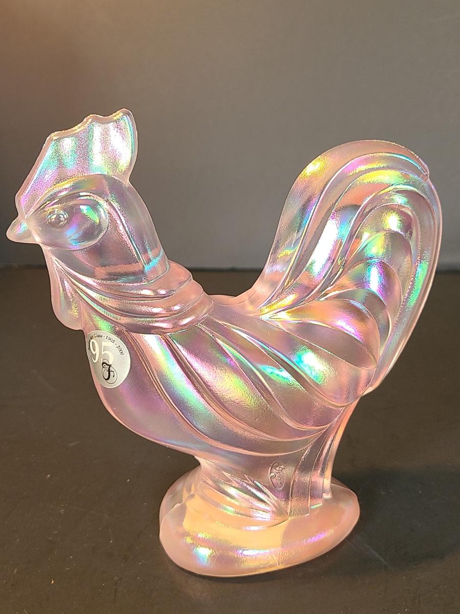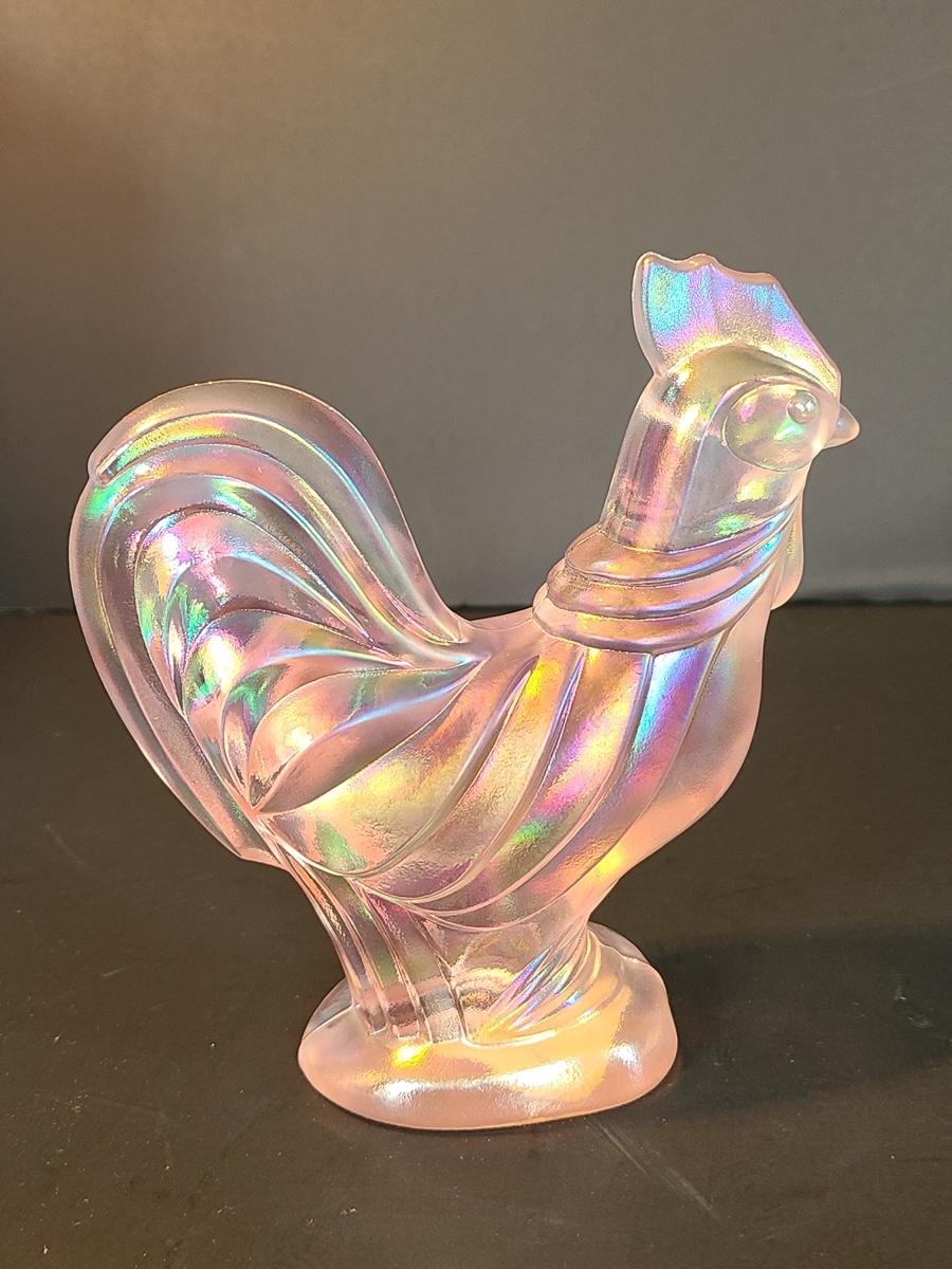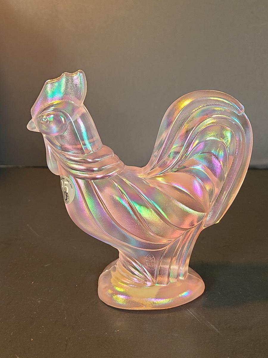 Lot 156: Fenton Champagne Satin Iridescent Rooster