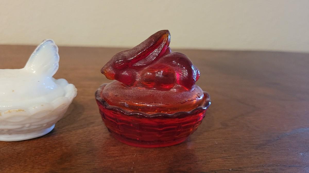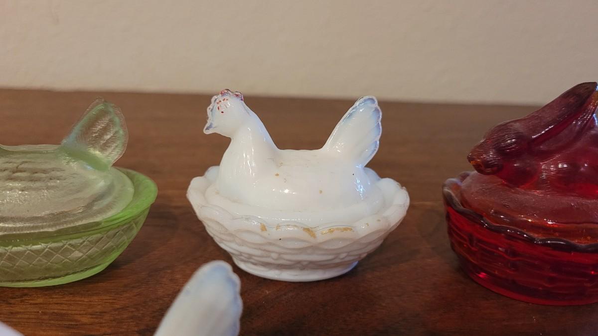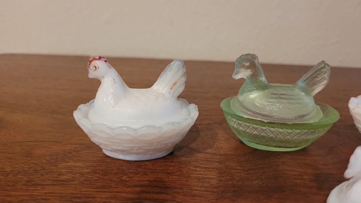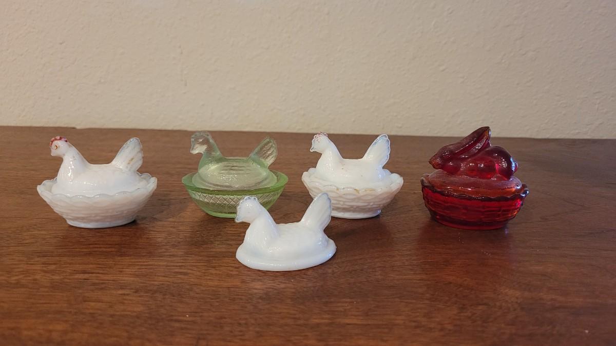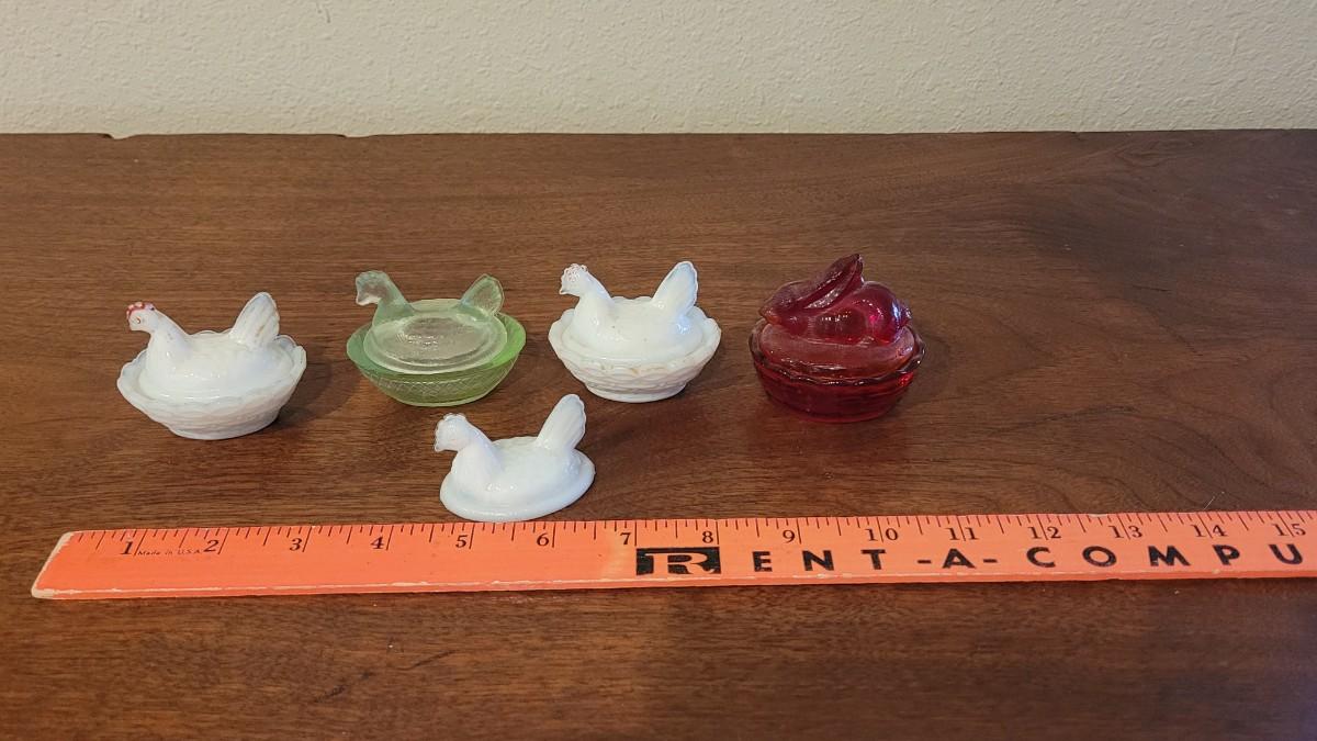 Lot 156: Vintage Miniature Covered Hen Dishes and 1 Rabbit Covered Dish