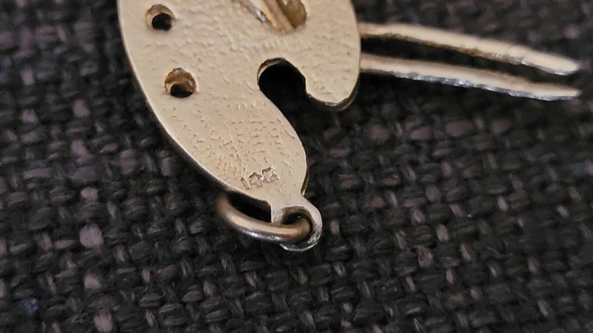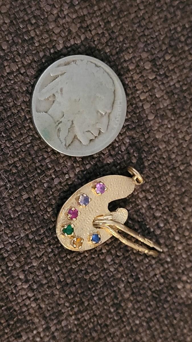 Fun Vintage 14k Yellow Gold Artist Inspired Oil Painting Pallette. Nickel is shown for scale size.