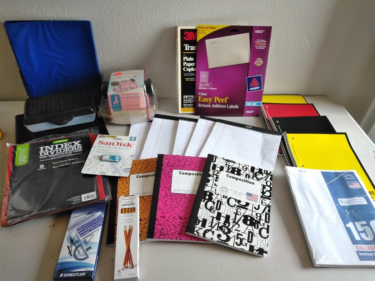 BRAND NEW ROLODEX, SPIRAL NOTEBOOKS, SCANDISC, PENCILS, PROTRACTOR KIT, AND OTHER SCHOOL & OFFICE SUPPLIES