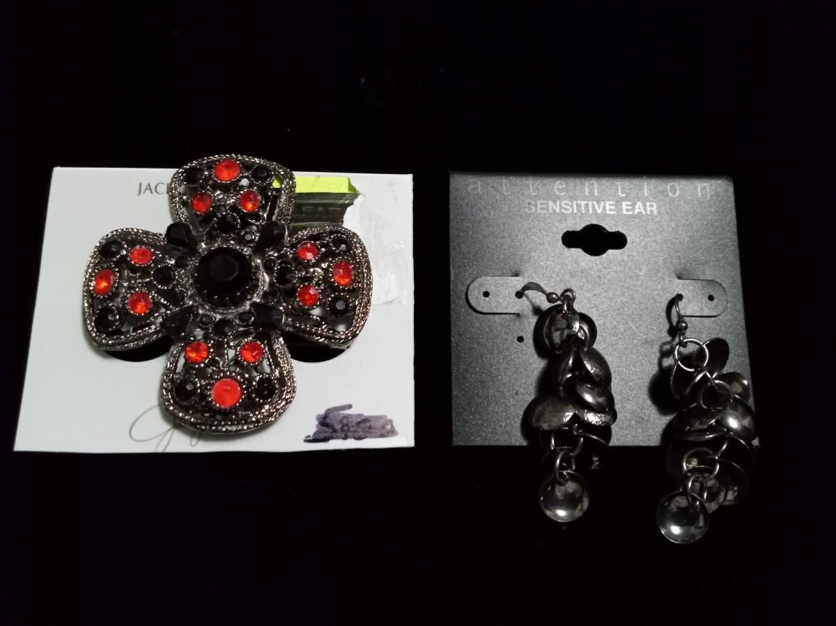 LOT 156 A BROOCH AND DANGLING PIERCED EARRINGS