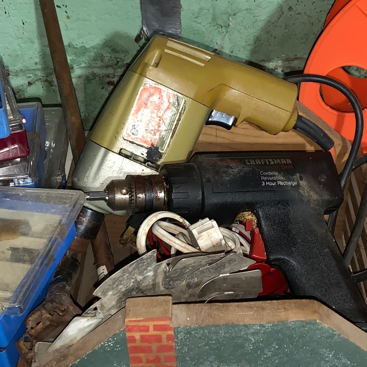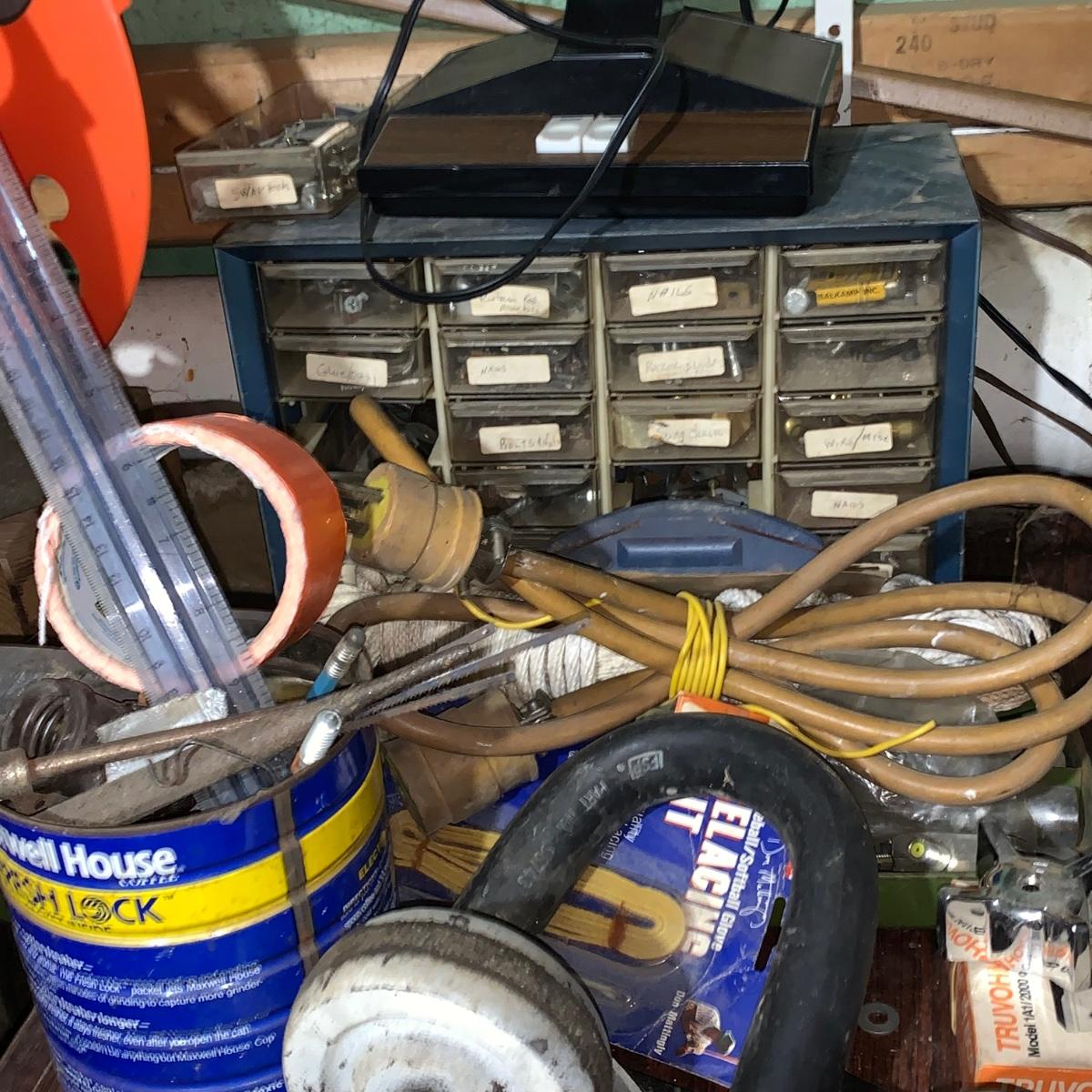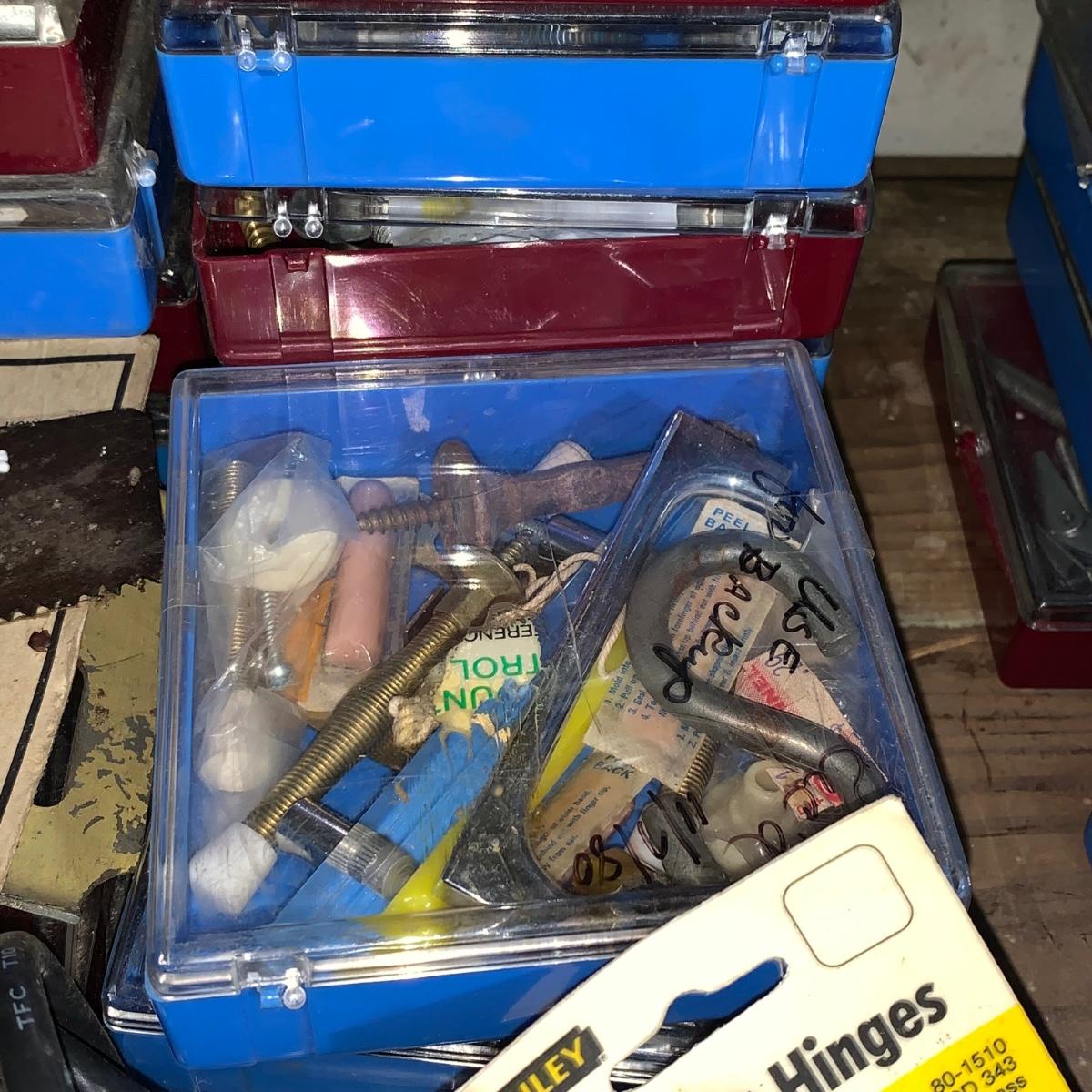 Lot 156: Tool Bench Lot: Power Tools, Nuts & Bolts, Vices - Everything you see.