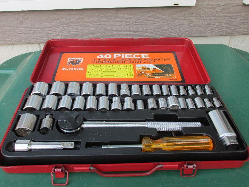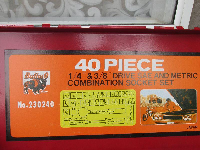 Buffalo 40 Piece 1/4" & 3/8" Drive SAE and Metric Combination Socket Set. Like new, never used.