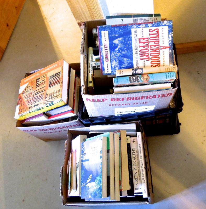 Lot 156: Four Boxes and Crates of Mostly Hardback Books
