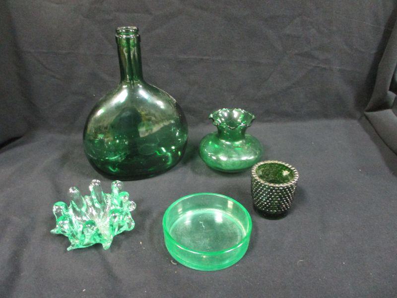 Lot 156 - Mixed Glass Includes Uranium Wine Coaster, Art Glass, and Other