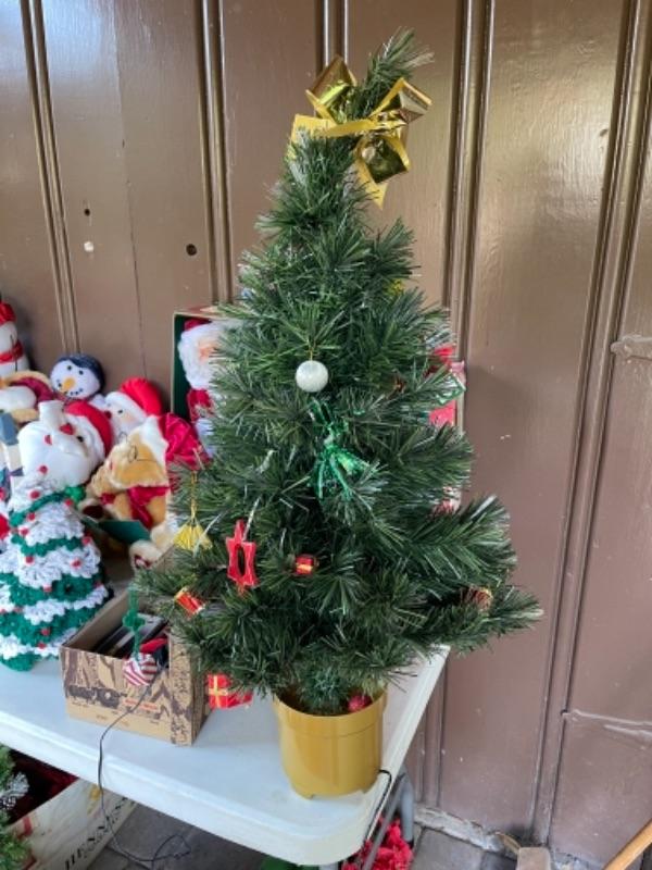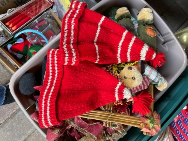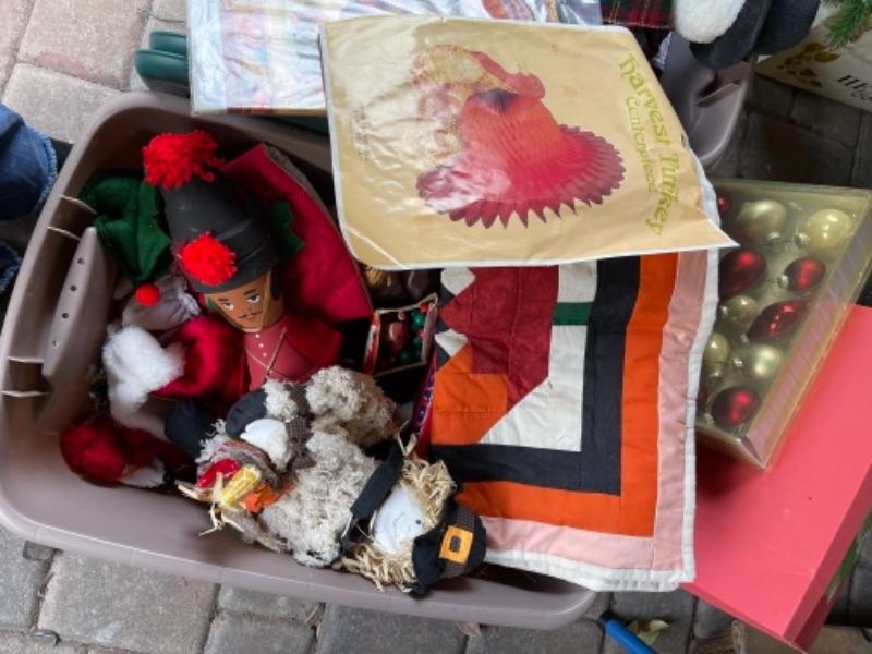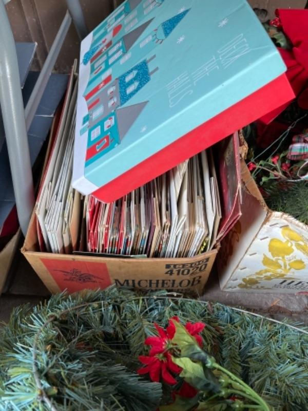 Lot 156. Huge assortment of Christmas décor, two trees, baskets, crafting supplies, folding boxes, cards, ribbon, ornaments; some Thanksgiving--Was $55 - -Now $30