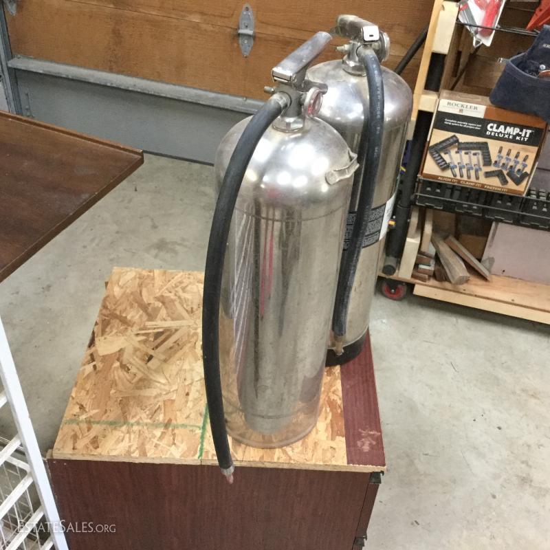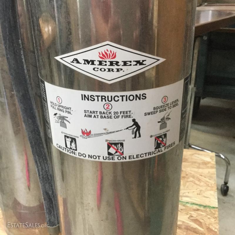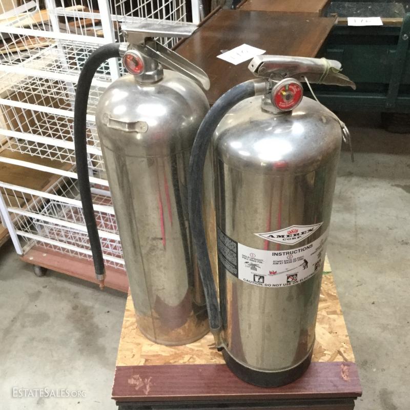 Two large Amerex Corp. fire extinguishers, not loaded. May be useable, appear to be in good shape. Could also be used for decor. Each stands 25" tall. This lot is available for local pick up in Hendersonville, NC only.