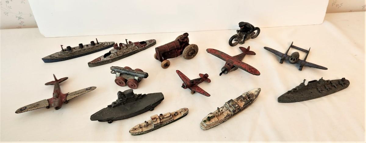 You get all you see here - 13 metal toys in all - antique condition. 1930's/40's.
