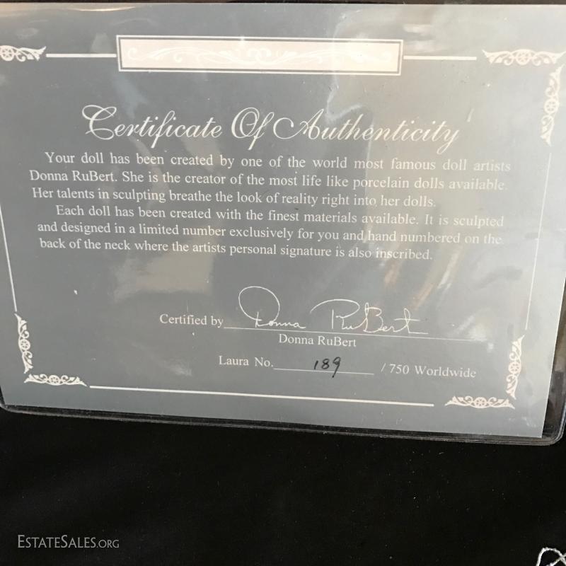 Laura is 41” tall. This limited edition doll is 189 of 750. Comes in original box with certificate of authenticity and bonnet. See photos for details. Doll ships from Columbus, North Carolina or local pick up