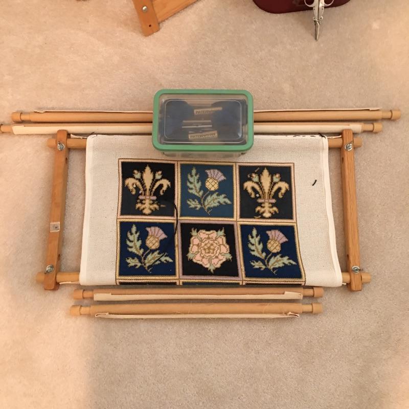 Lot 156 - Vintage Sewing Box and Needlepoint Tools
