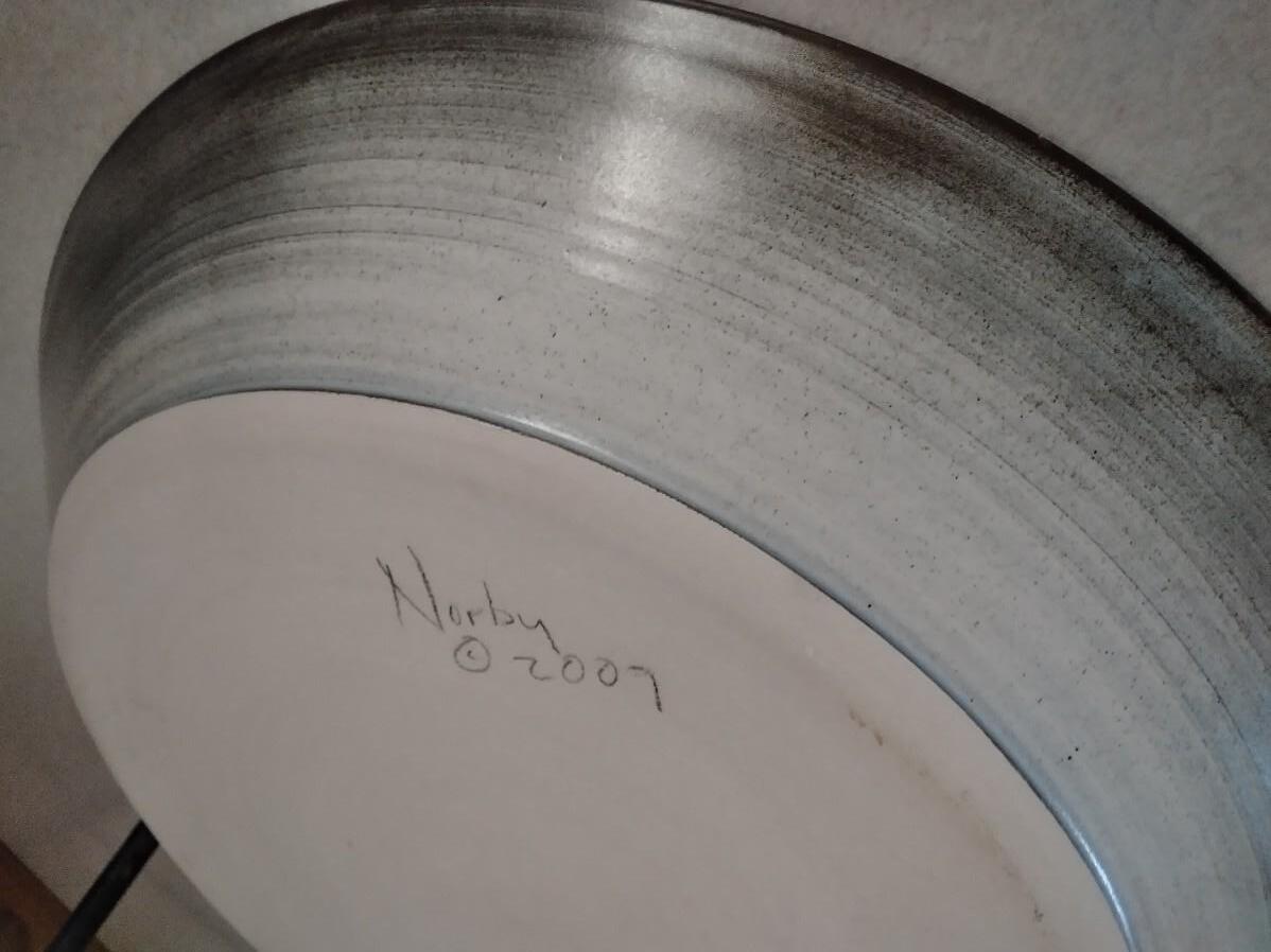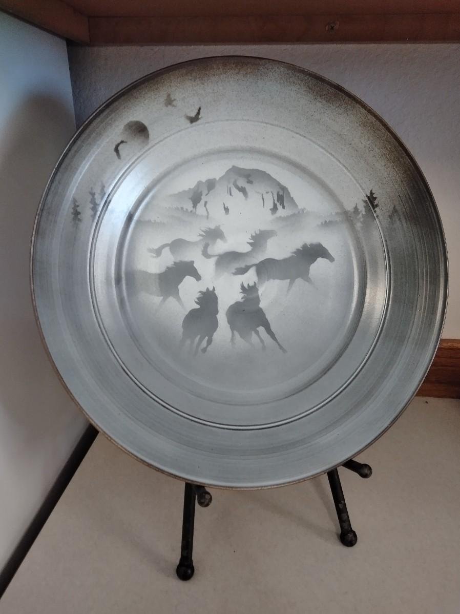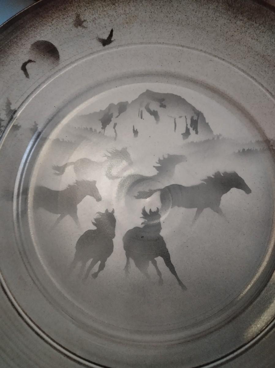 SIGNED POTTERY HORSE PLATTER WITH STAND