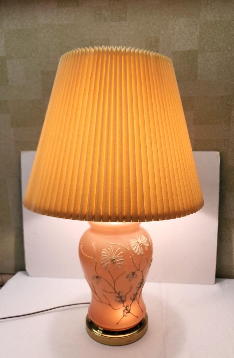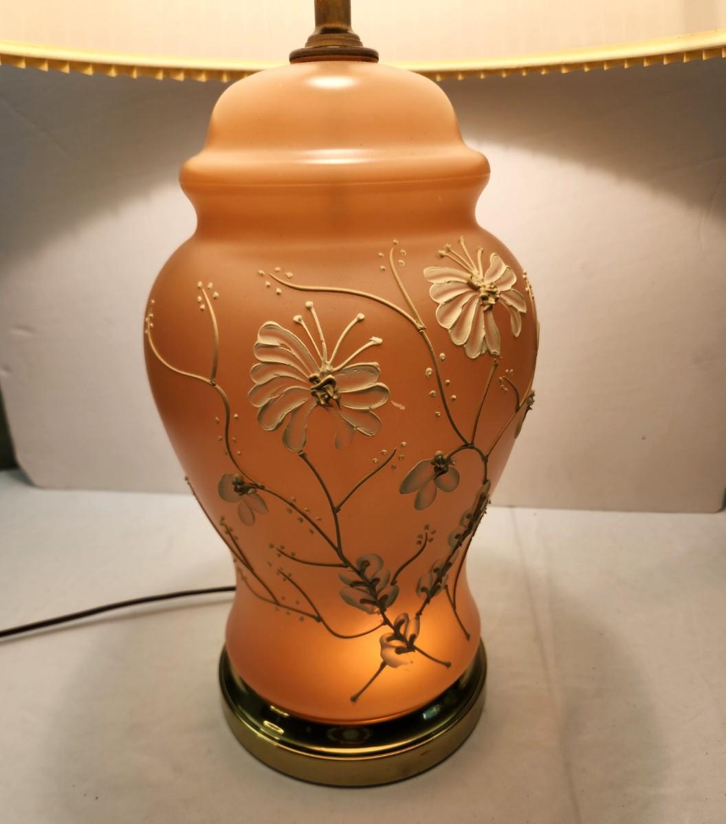 Lot #156 Table Lamp w/frosted pink floral base - 1970's