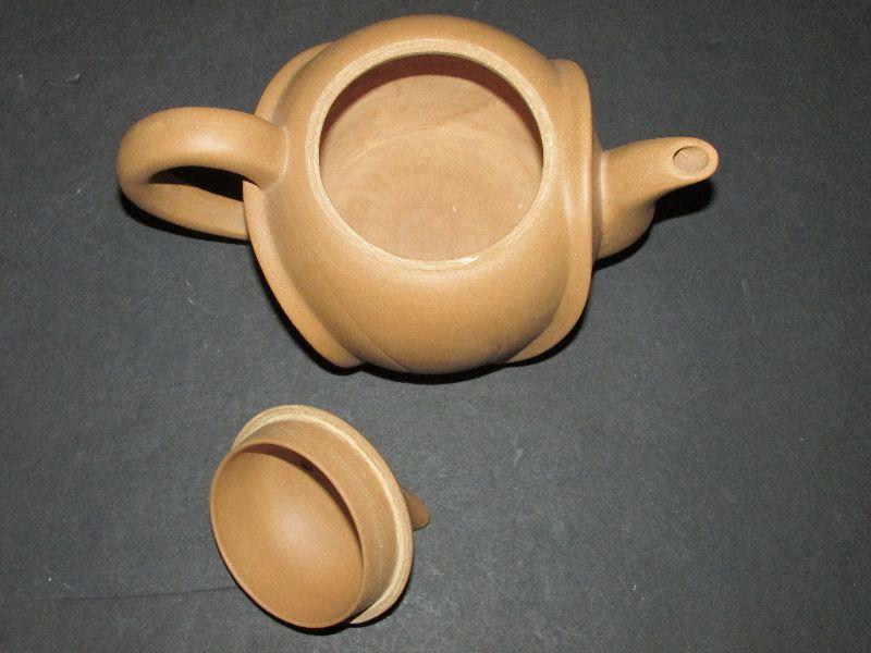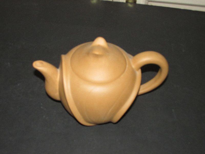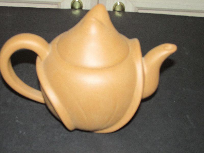 Tan teapot made by Teavana. Signed on the bottom. No chips or cracks.