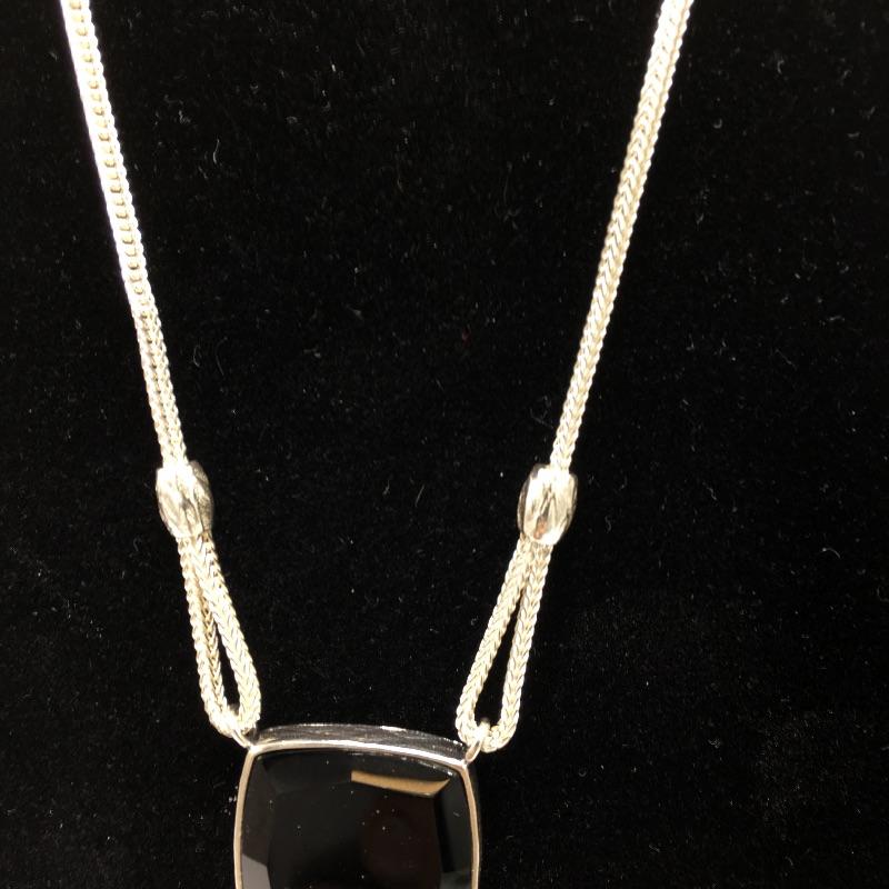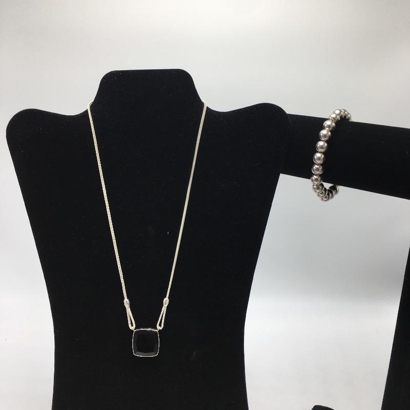 Silpada True Colors double sided necklace in black agate, compressed turquoise and sterling silver that measures 18”-20” and a Rich Abundance sterling silver bracelet that measures that 7.5” long.