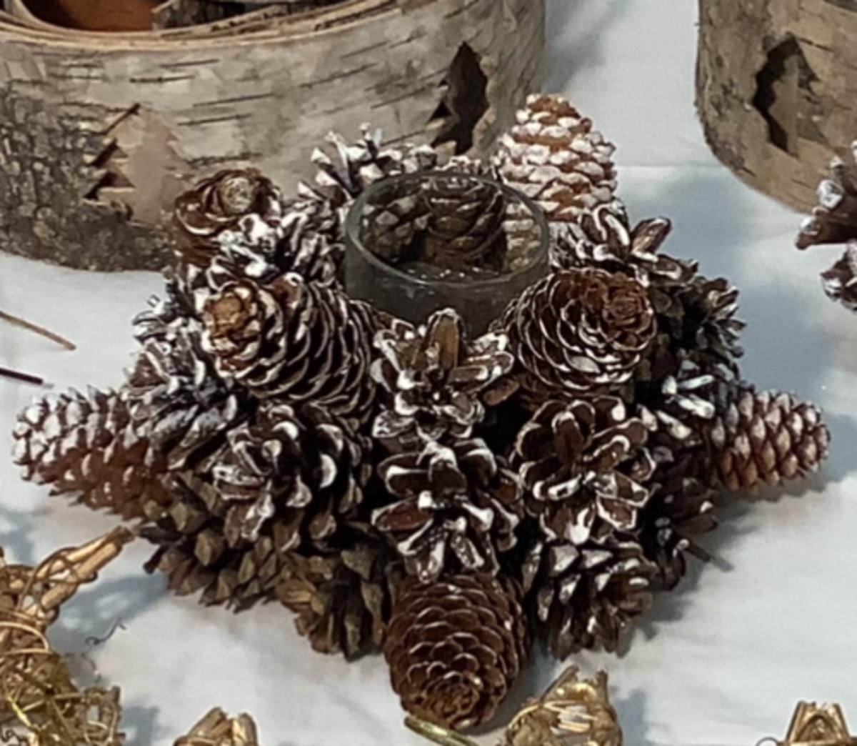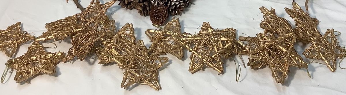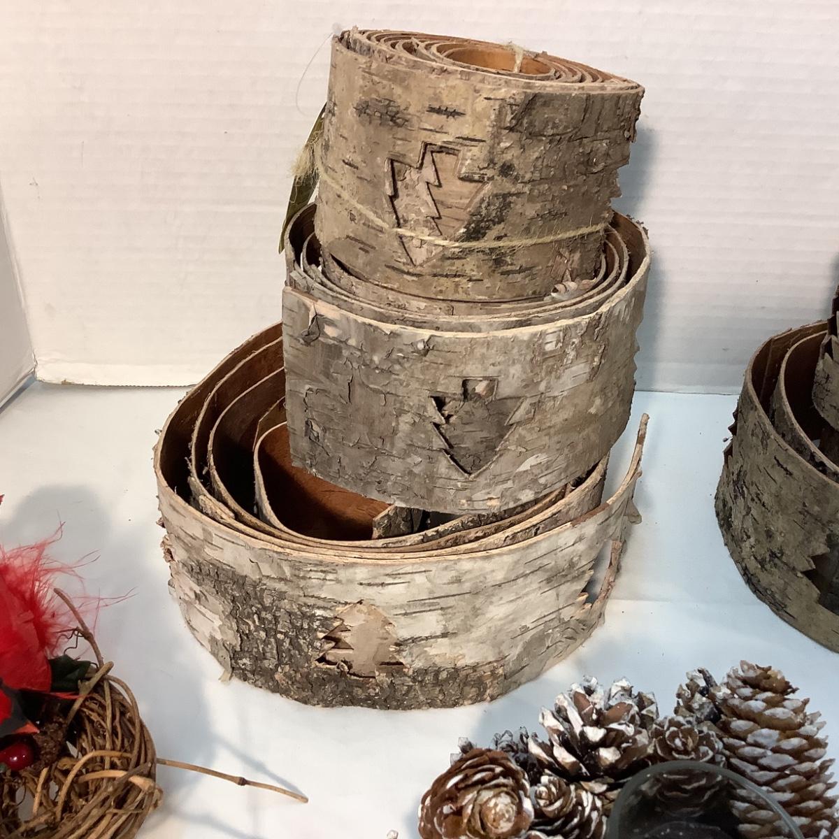 Lot 1564  Lot of Christmas Decor, Bark Garland / Twig Gold Stars / Cardinal with Nest / Pinecone Candle Holder