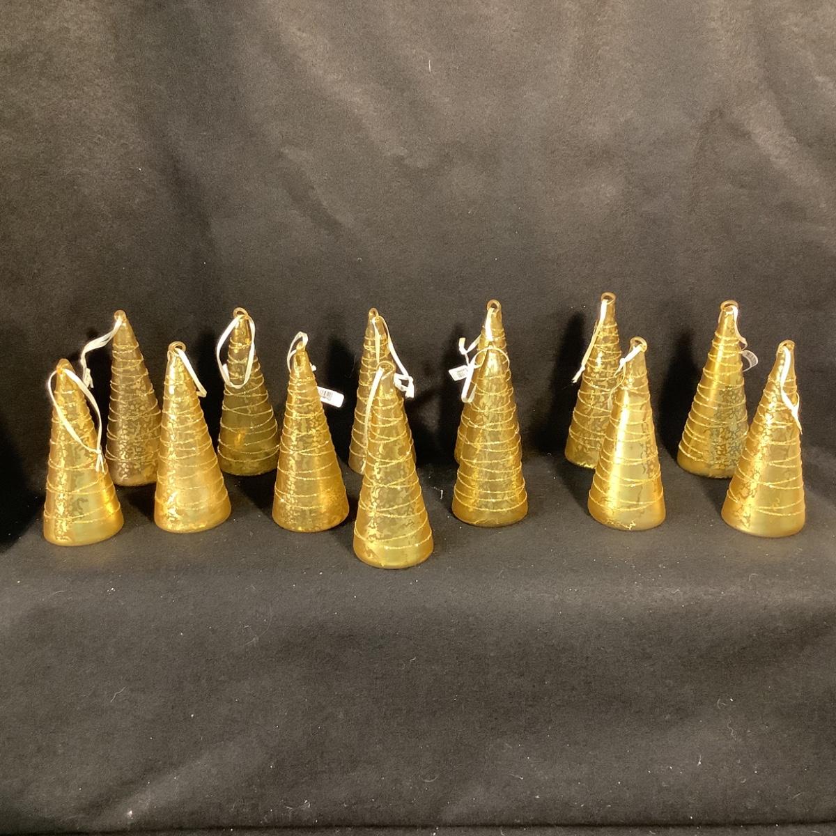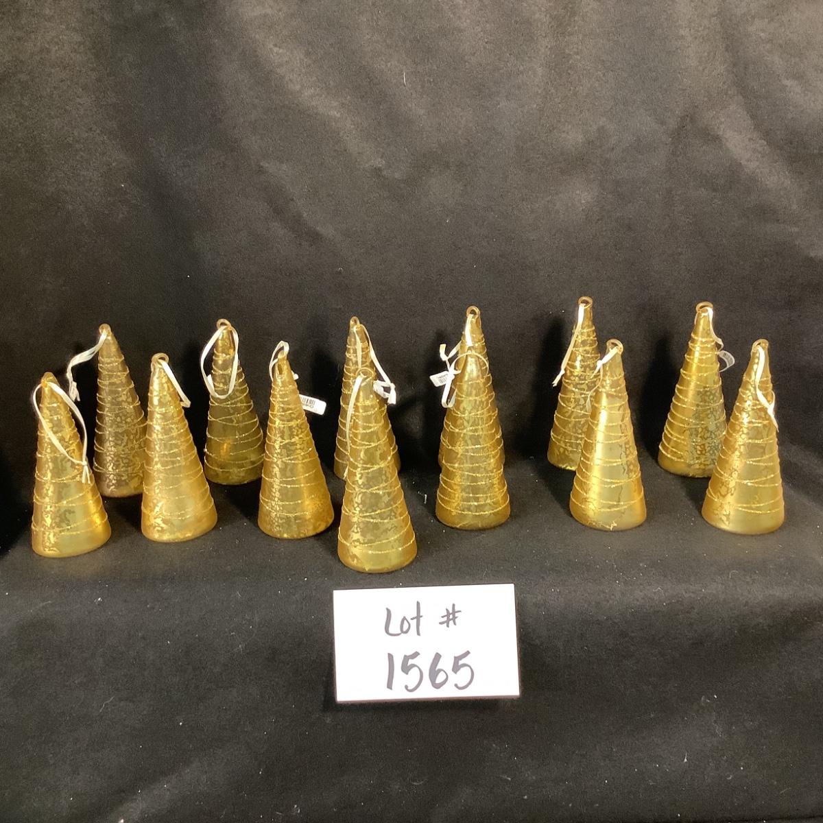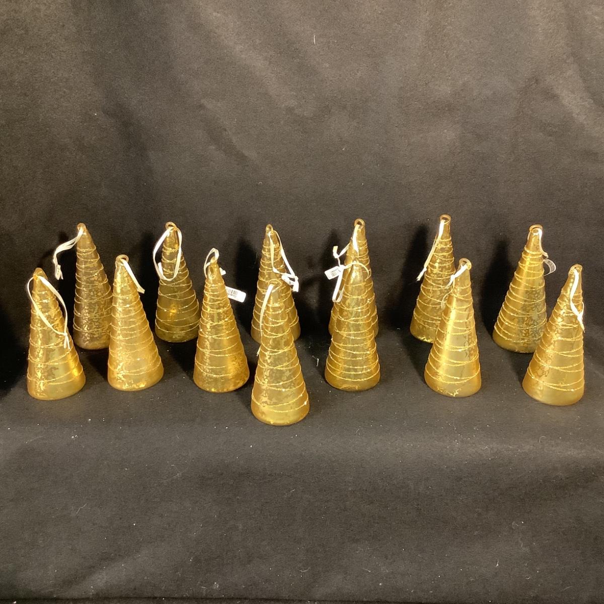 Lot 1565. Lot of Fourteen Gold & Glitter Glass Cone Shaped Ornaments