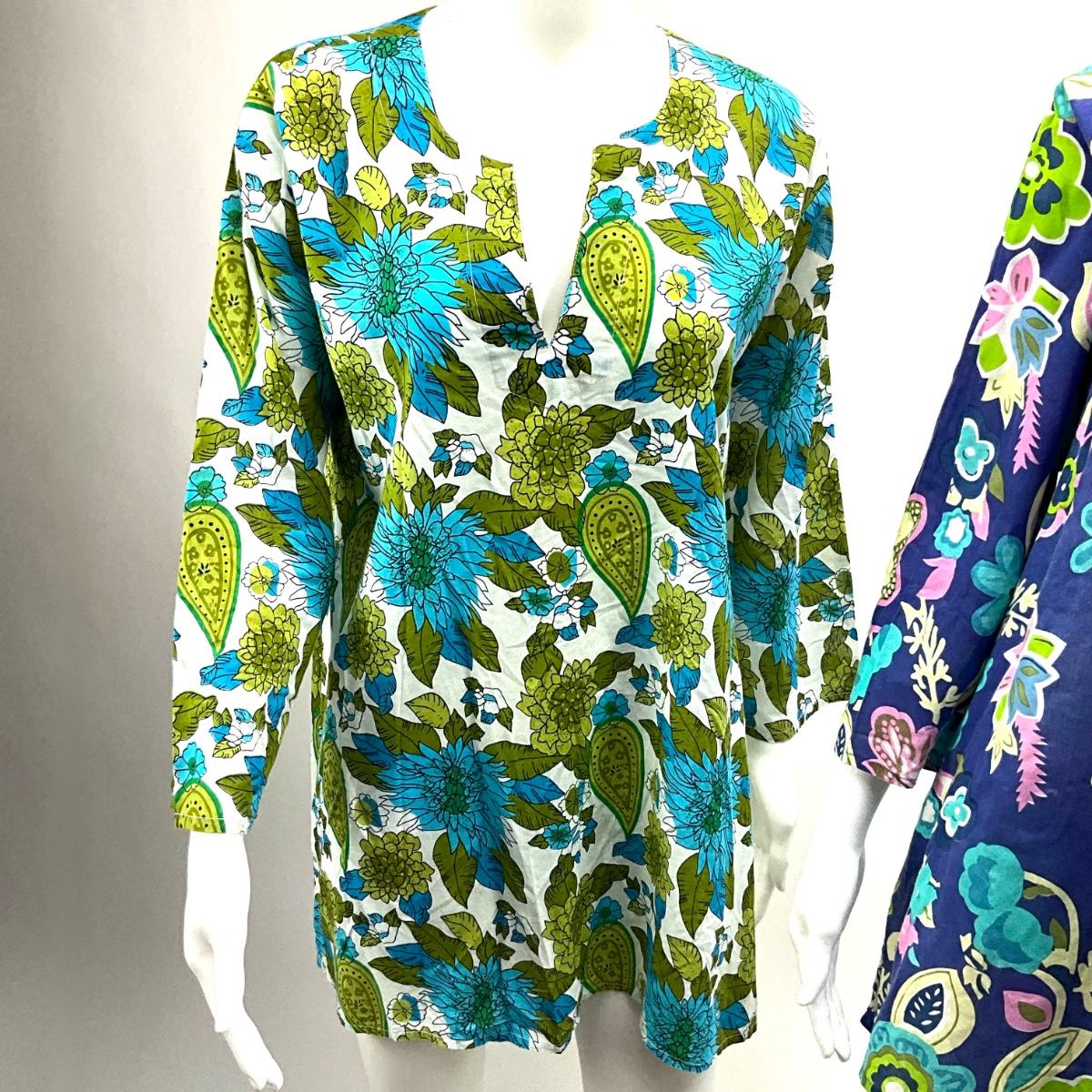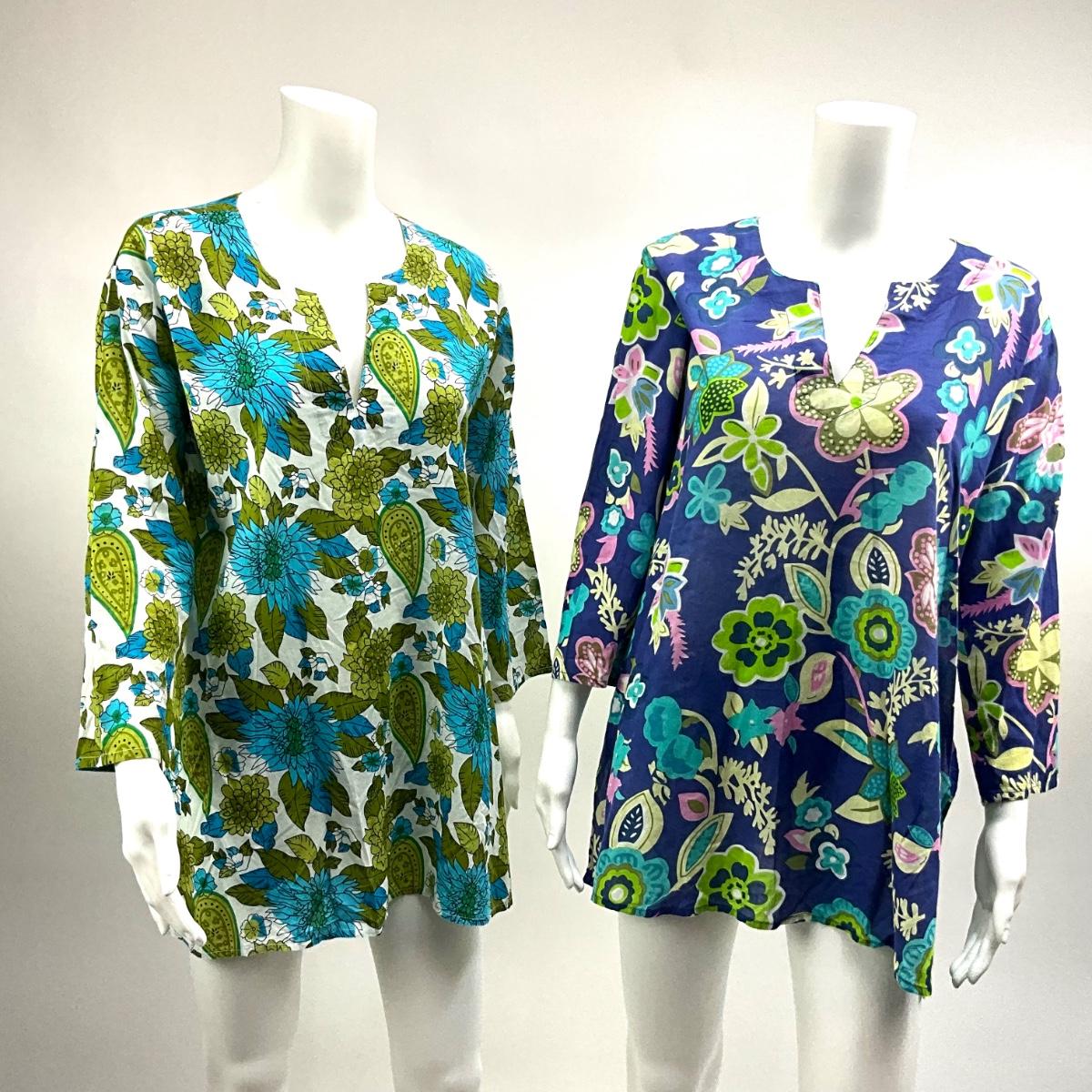 Lot. 1566 Pair of Long-sleeve Floral/Tropical Tunics 100% Cotton