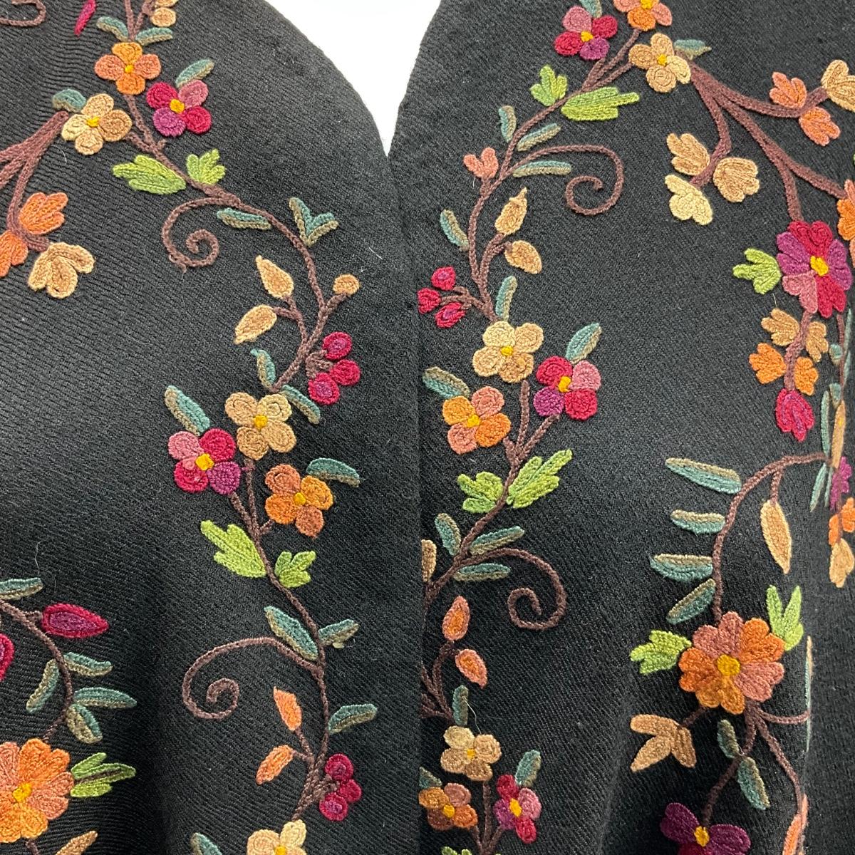 Floral Embroidered Wool Shawl