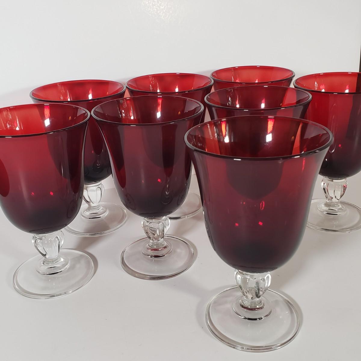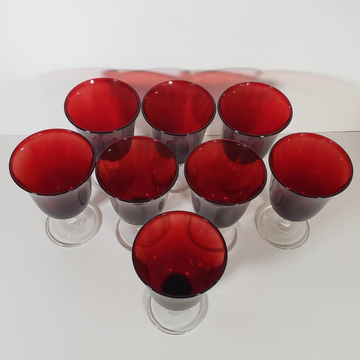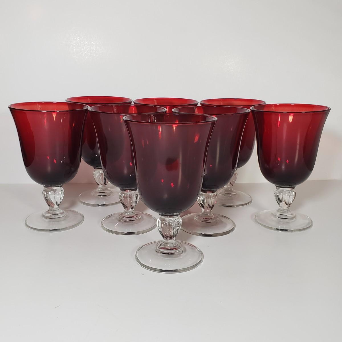 LOT 156D: Cristal D'Arques Ruby Red Water Goblets Set of 8
