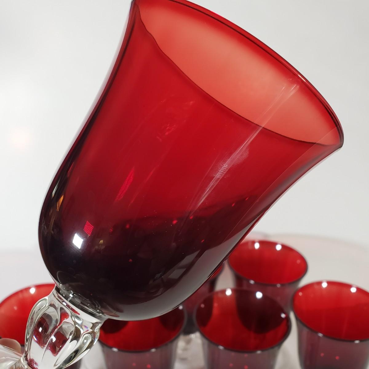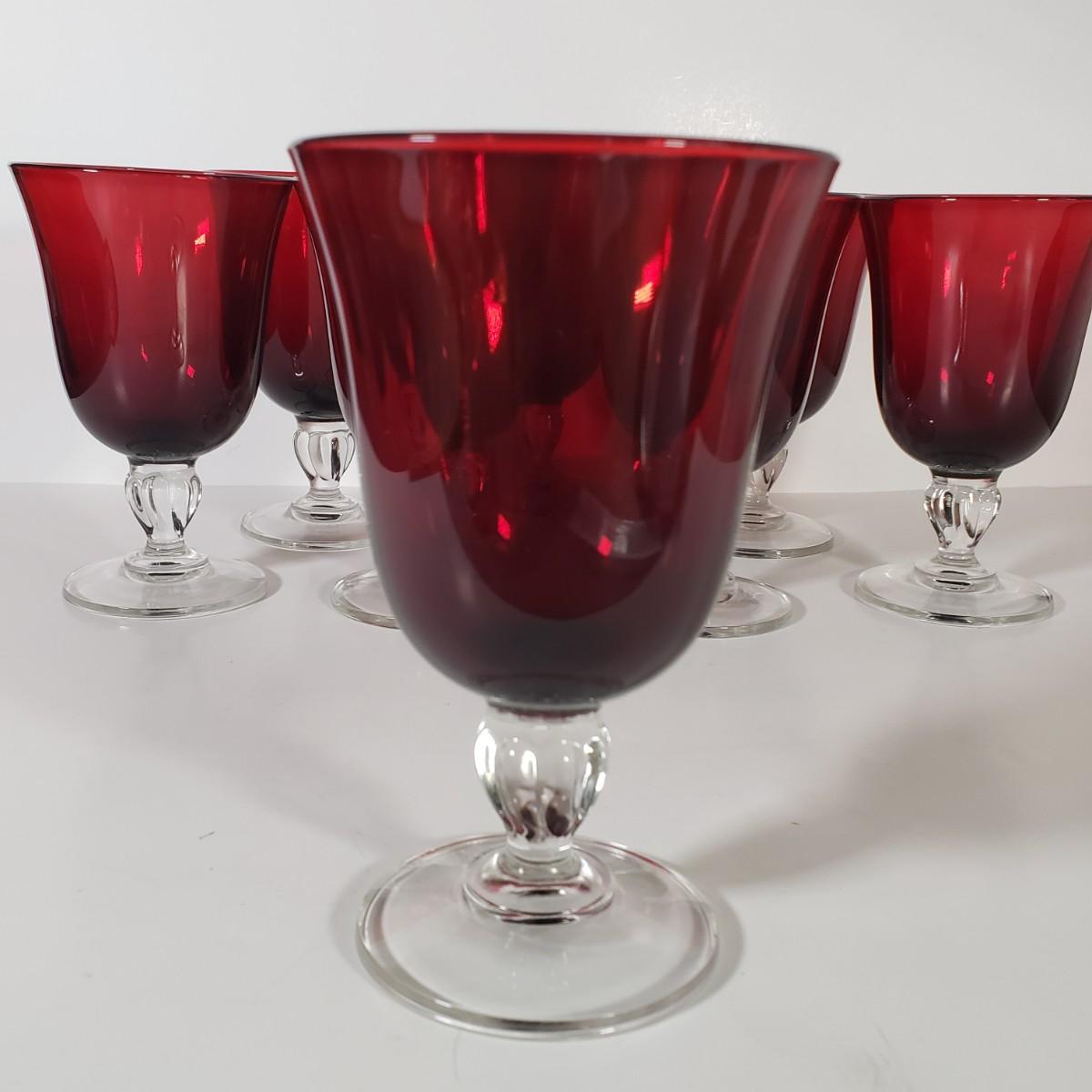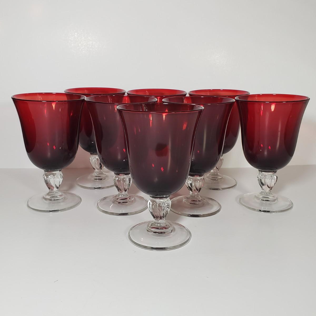 LOT 156D: Cristal D'Arques Ruby Red Water Goblets Set of 8