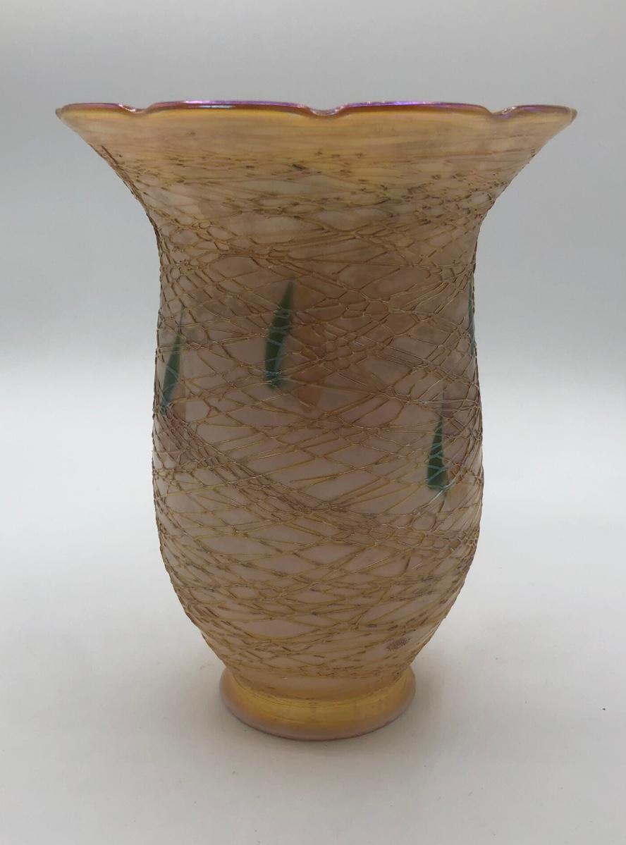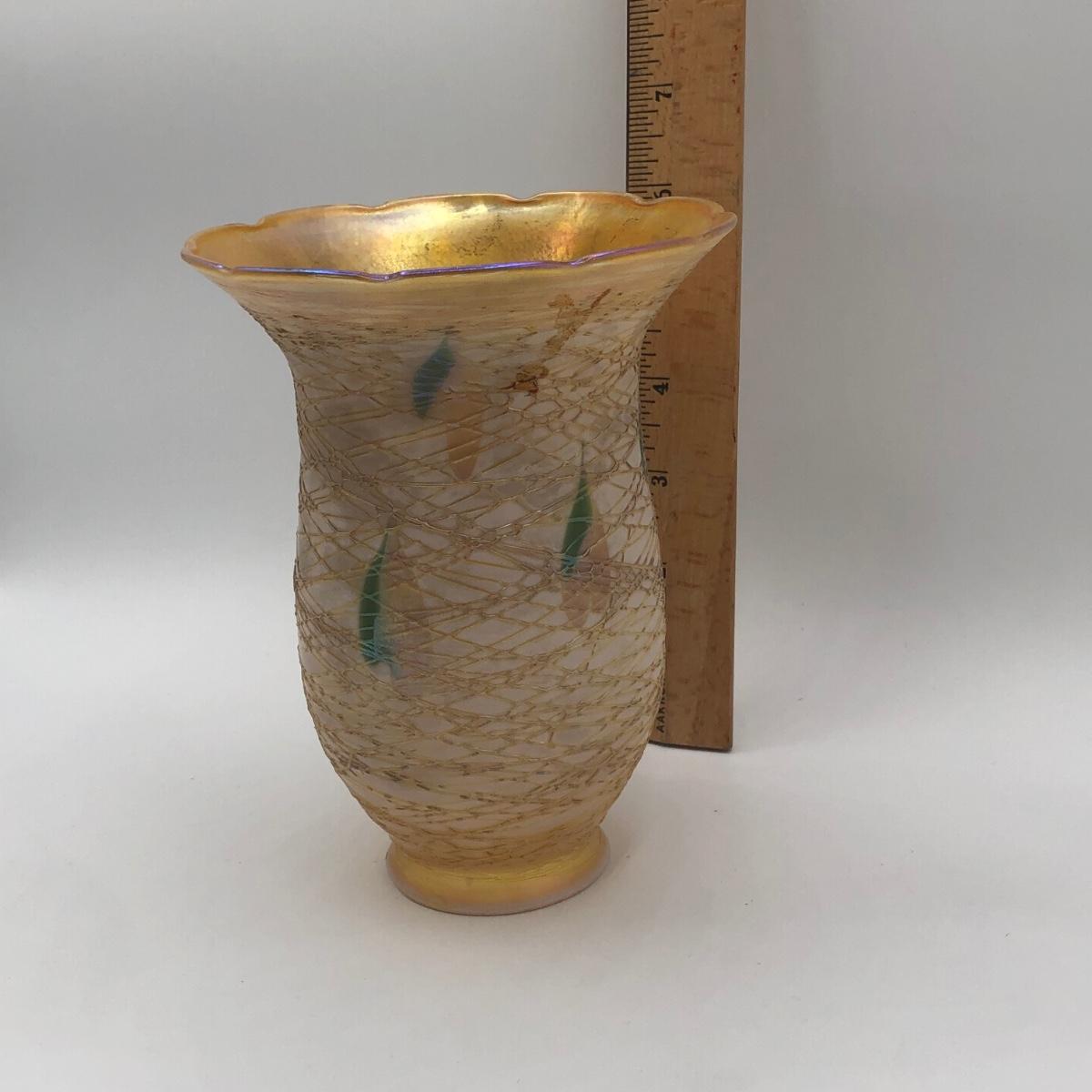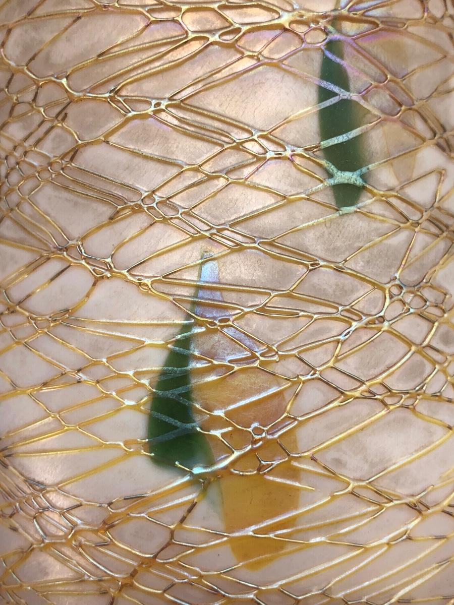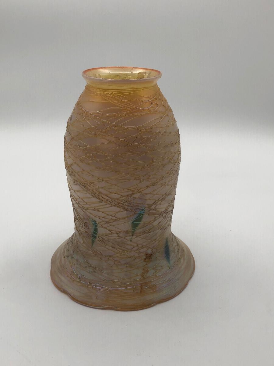 LOT 156F: Signed Quezal Art Glass Threaded Lamp Shade Hearts
