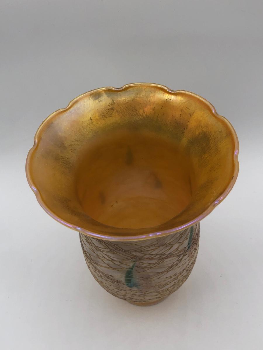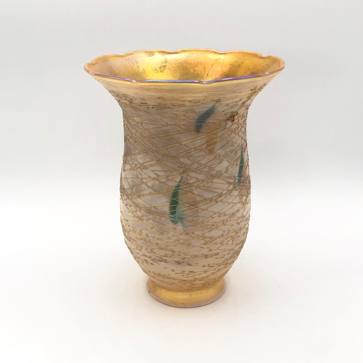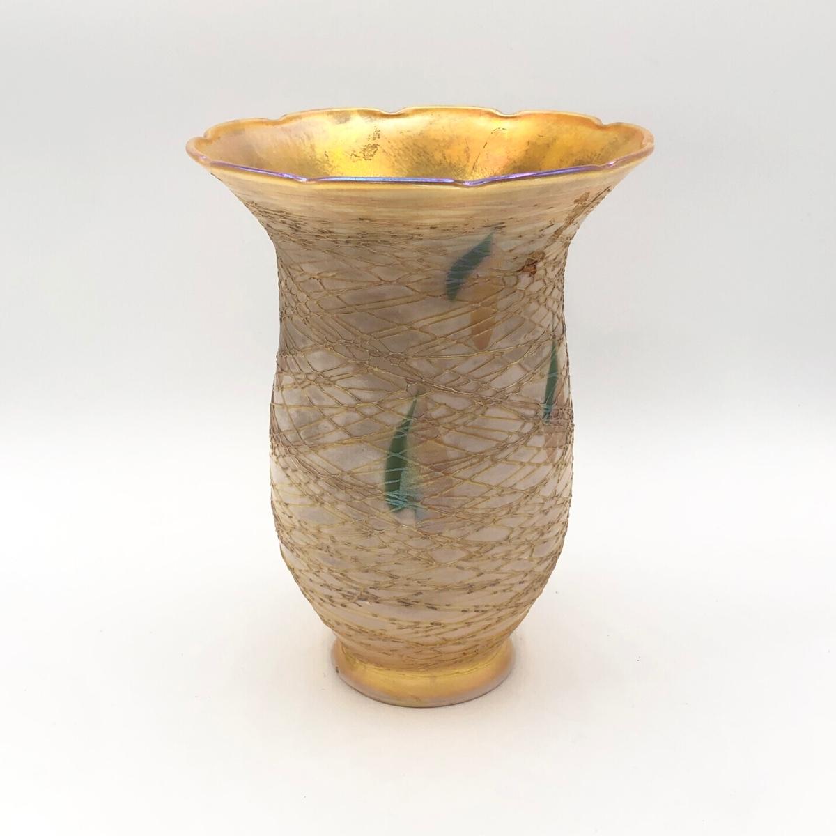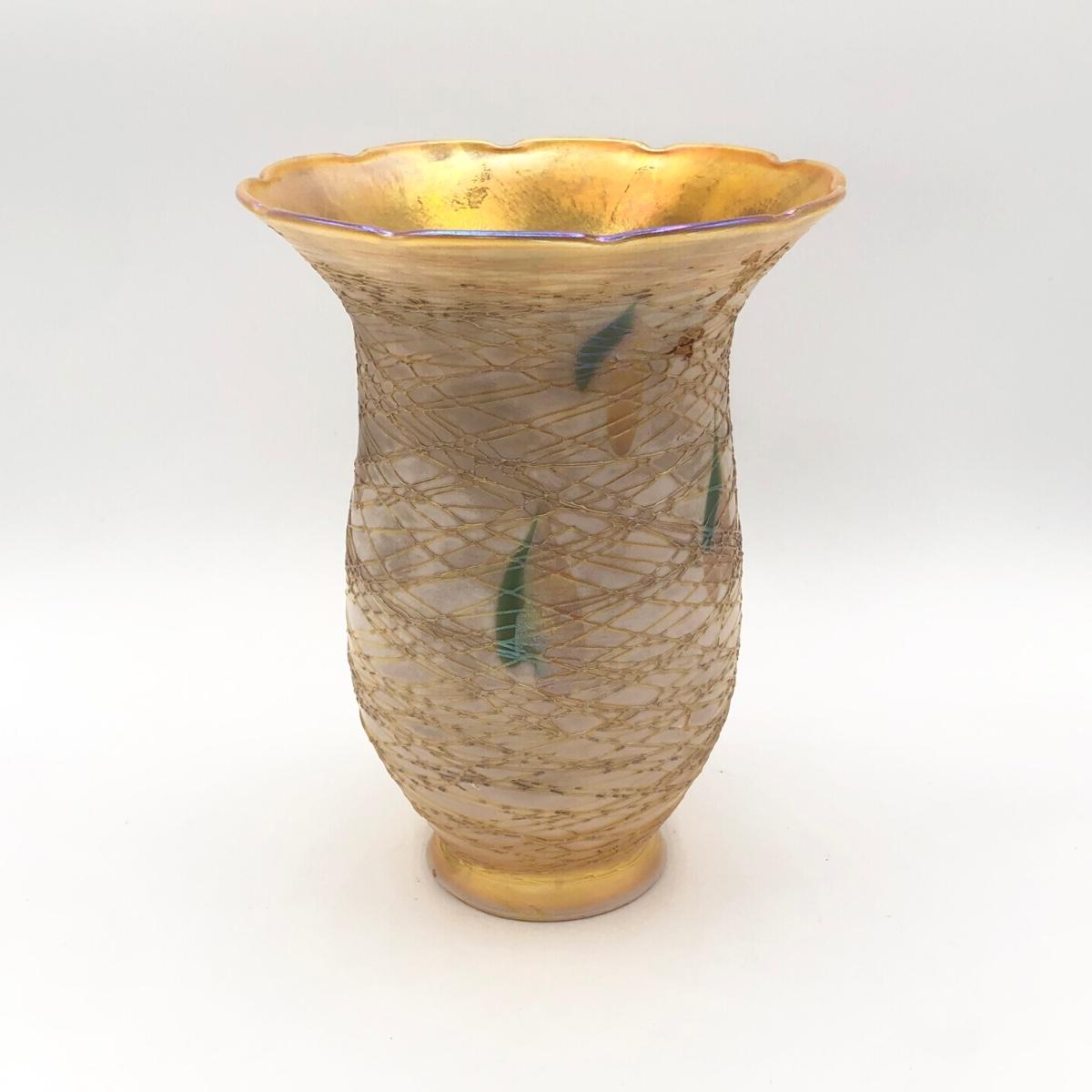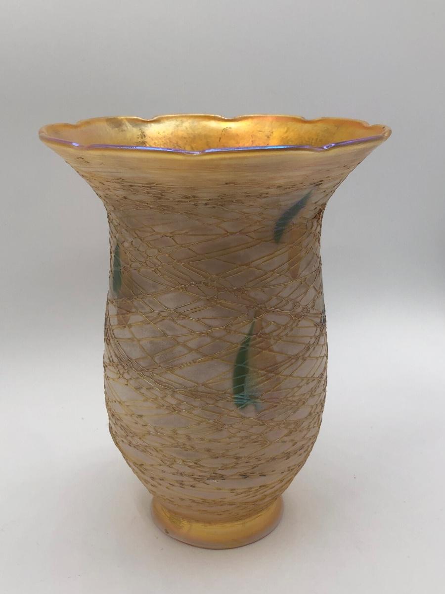 LOT 156F: Signed Quezal Art Glass Threaded Lamp Shade Hearts