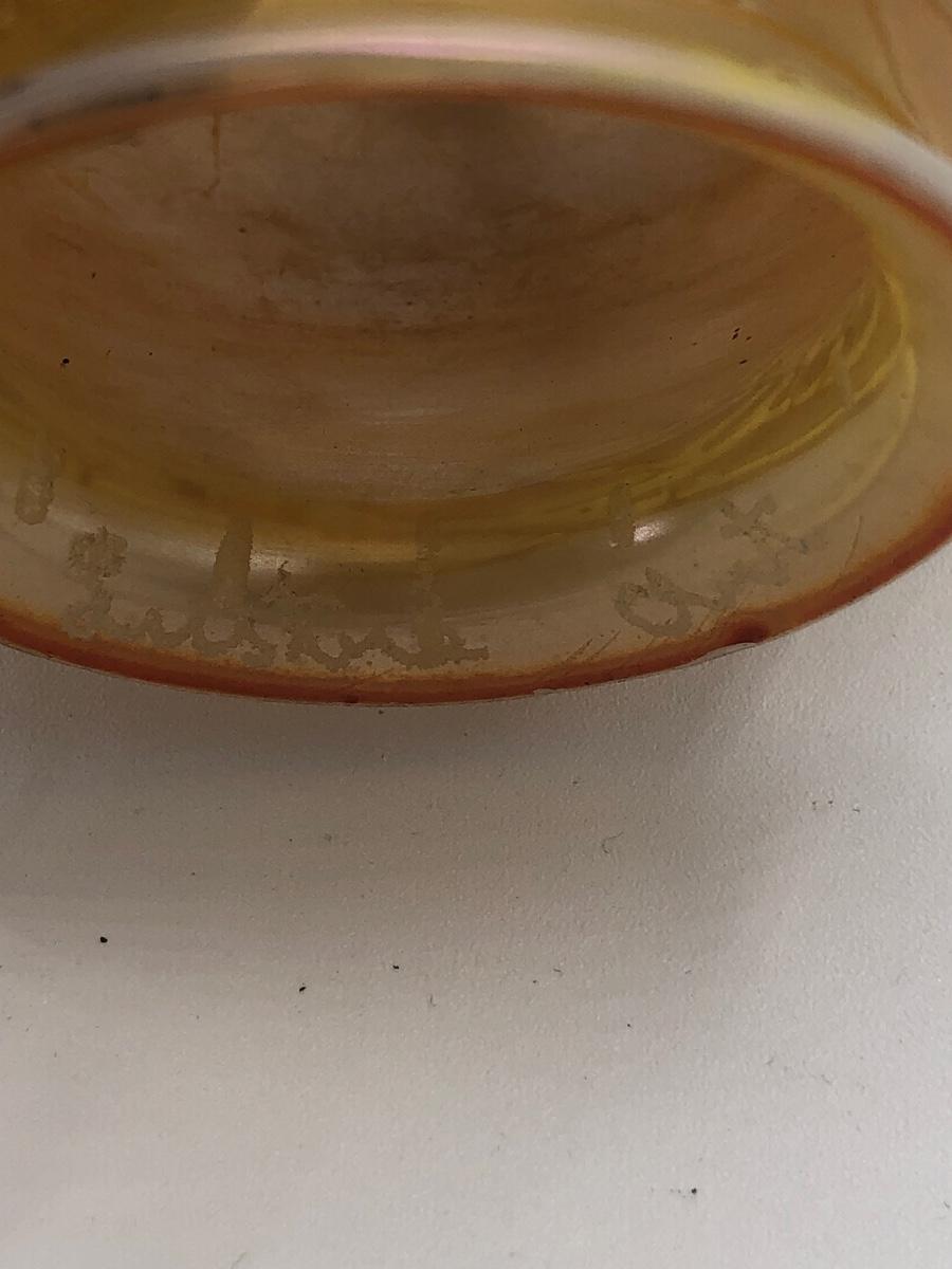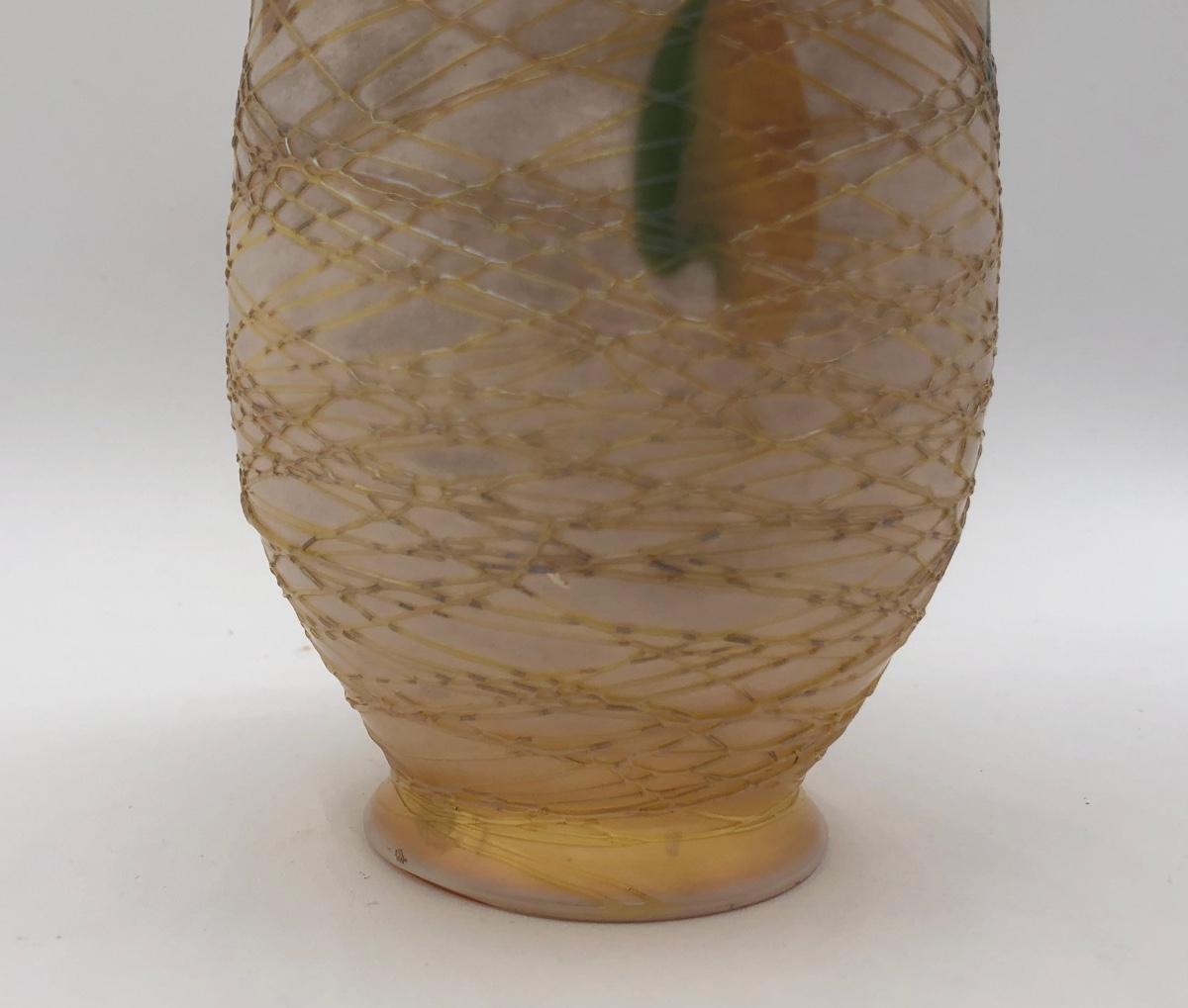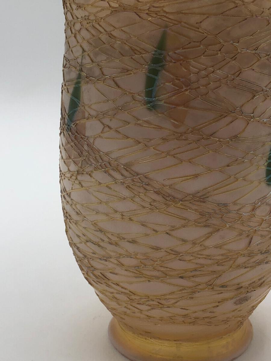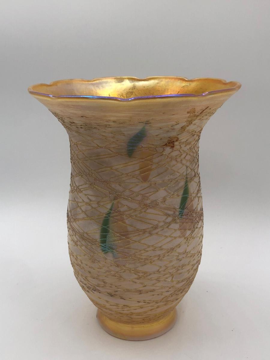 LOT 156F: Signed Quezal Art Glass Threaded Lamp Shade Hearts
