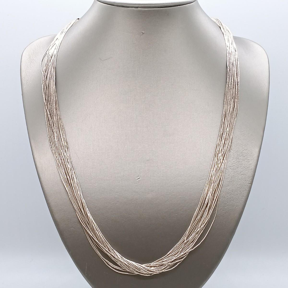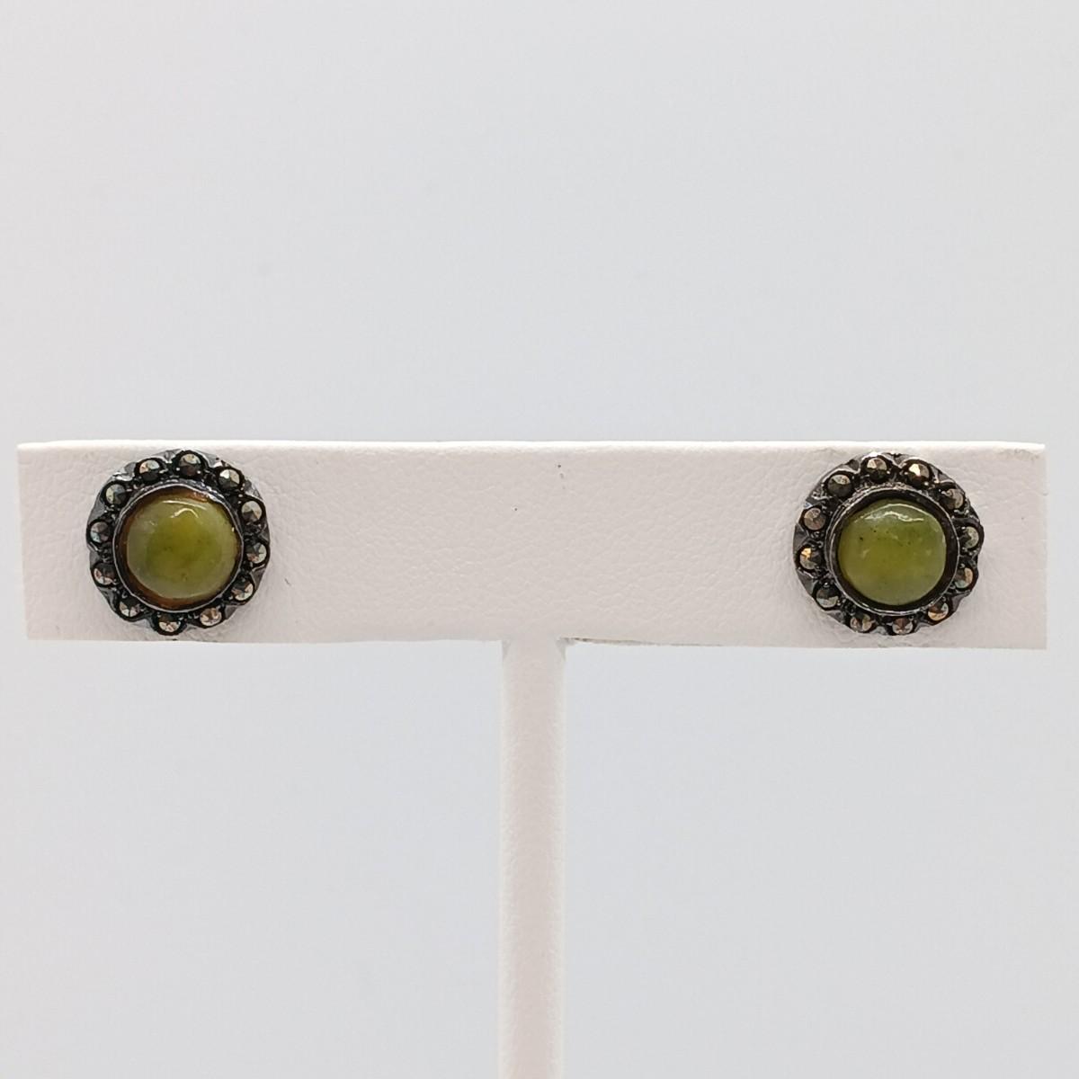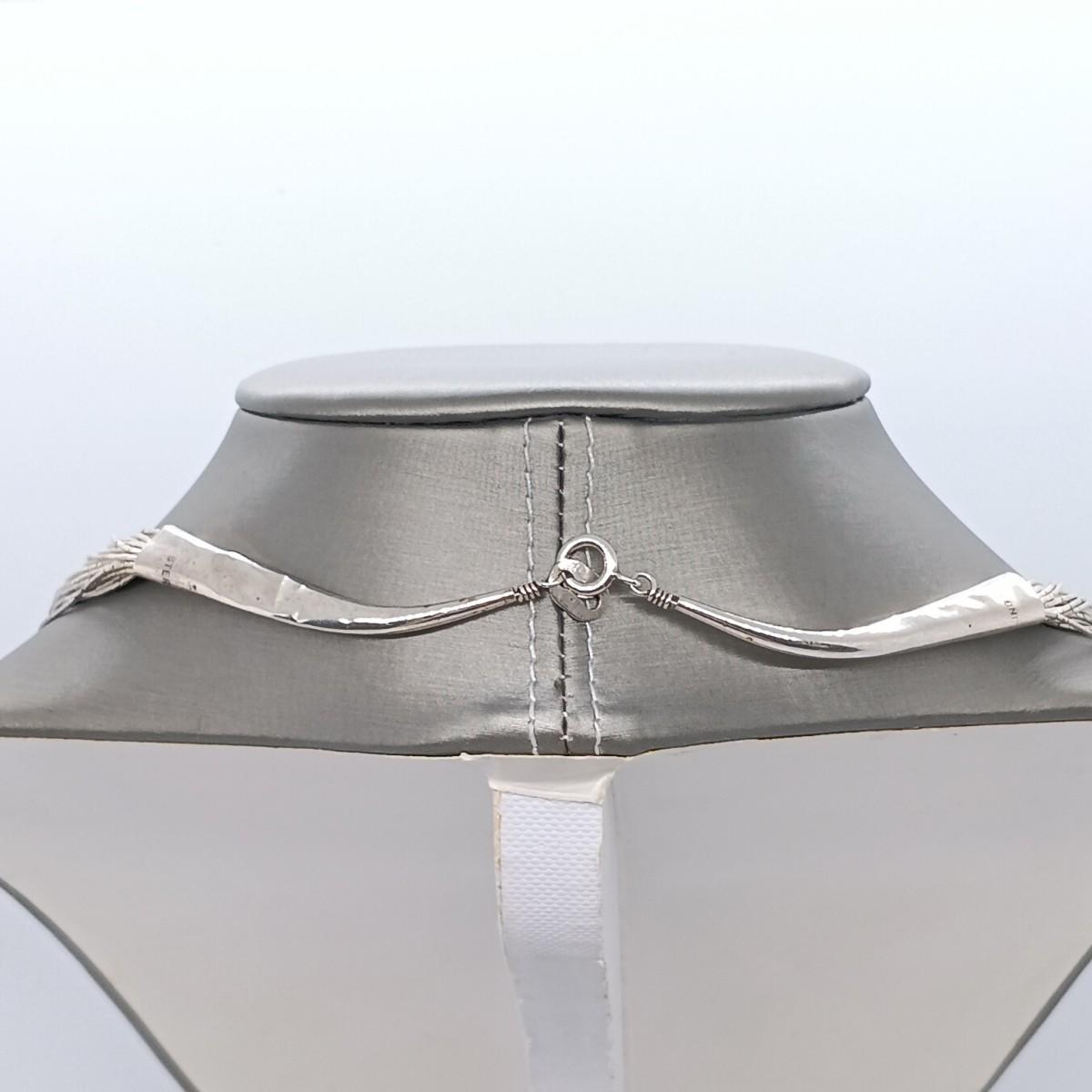 LOT 157: Liquid Silver Multi-Strand Sterling Necklace, Green Stone and Marcasite Sterling Earrings & Sterling Bracelet 40.7gtw