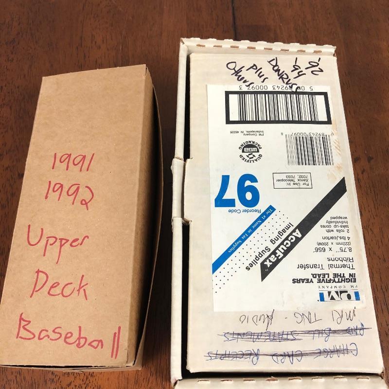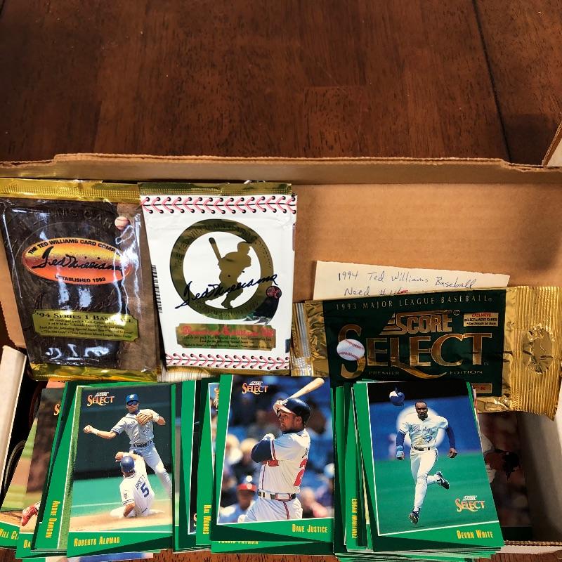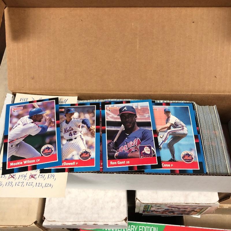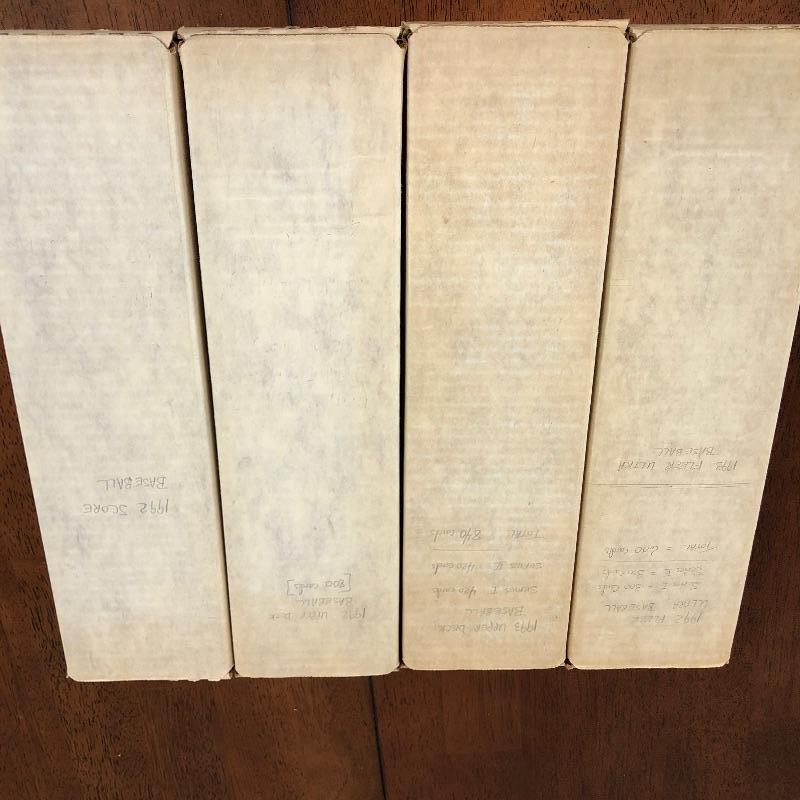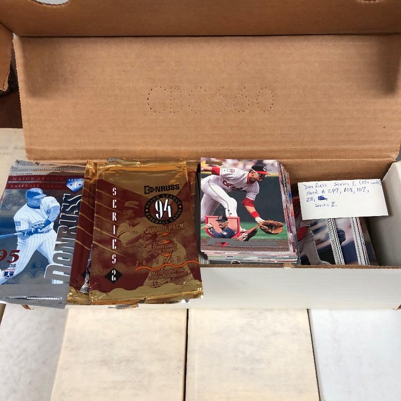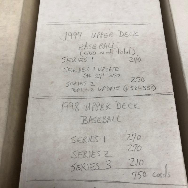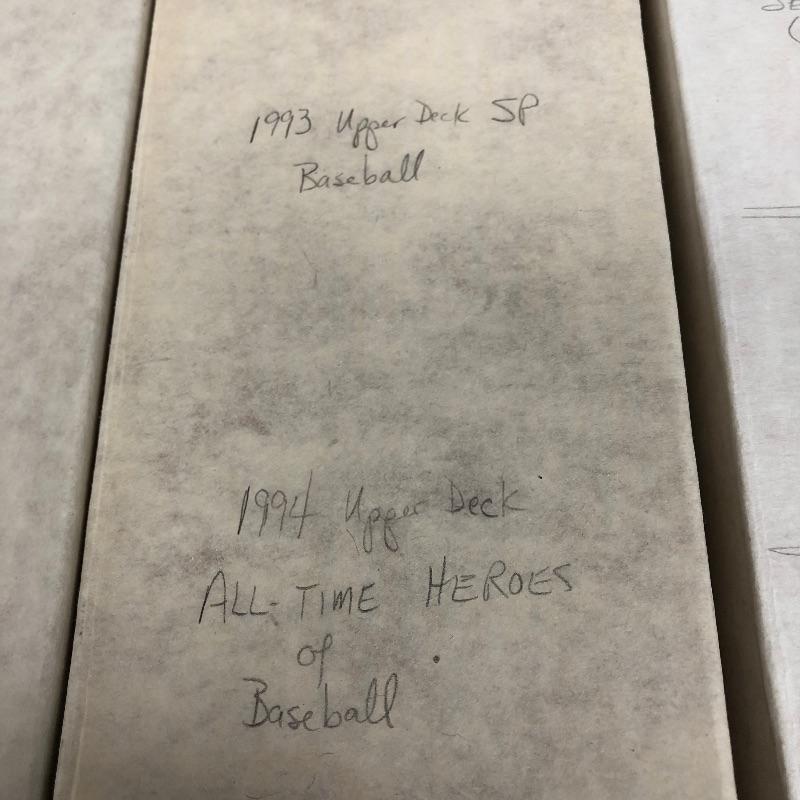 32 Boxes of Baseball Collector cards including several 1990 boxed sets like the unopened 1990 Score Set with 740 player cards and 56 magic motion trivia cards! Please note each of the white boxes has been labeled by the late owner, and while every effort has been made to verify the contents we are unable to guarantee 100% accuracy. This lot will be shipped by UPS due to it's size. Please call for a quote 828-252-6930