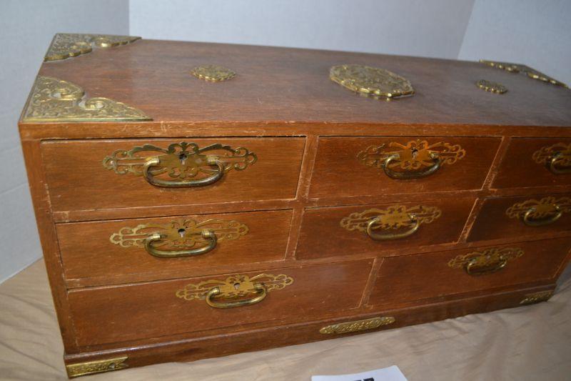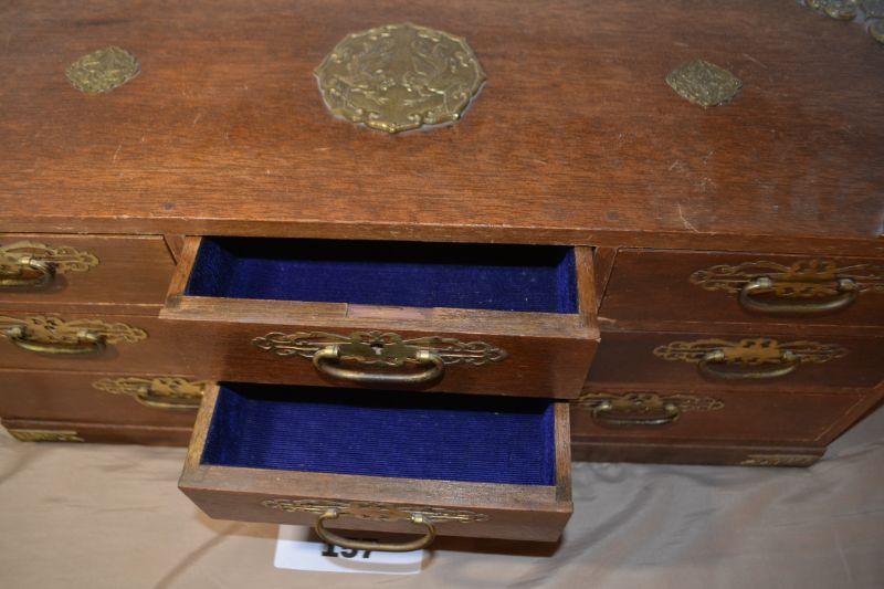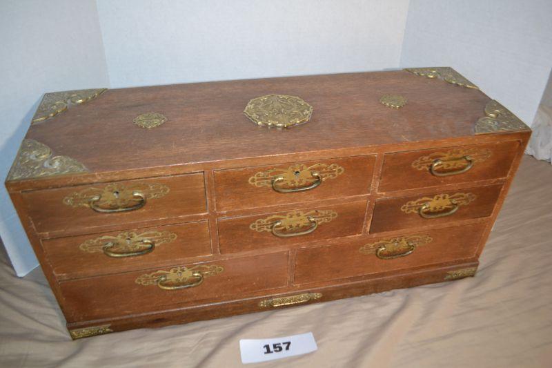 LOT 157 VINTAGE JEWELRY BOX MADE IN JAPAN. 25" WIDE 9" DEEP 11" HIGH