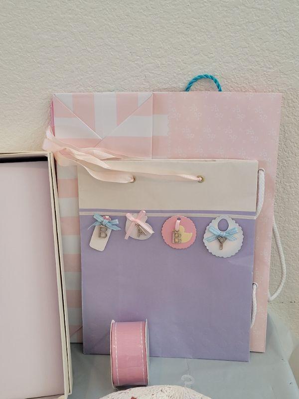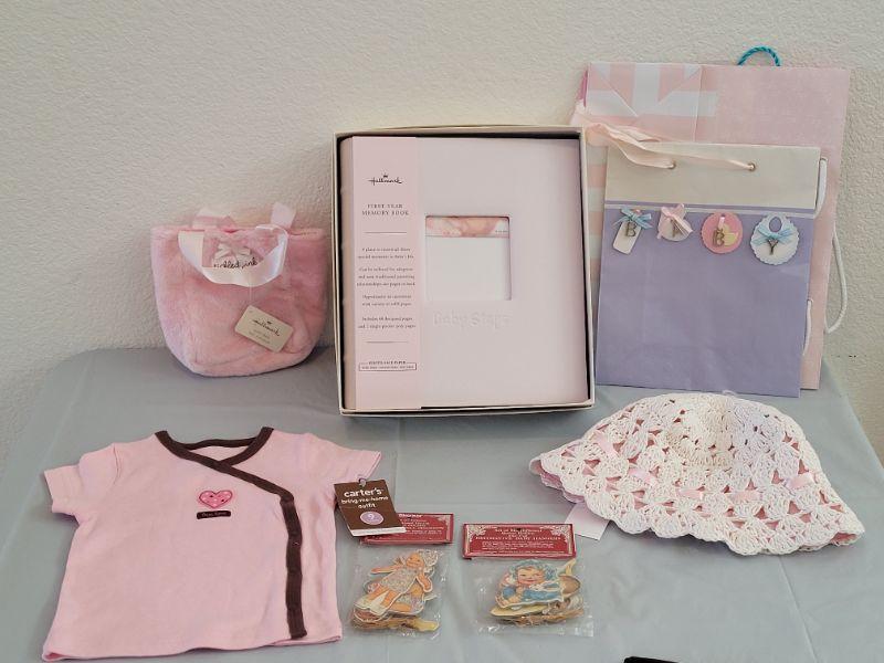 Lot 157: Baby Gift Bags, Hat, Shirt, Memory Book and Gift or Deco Tags