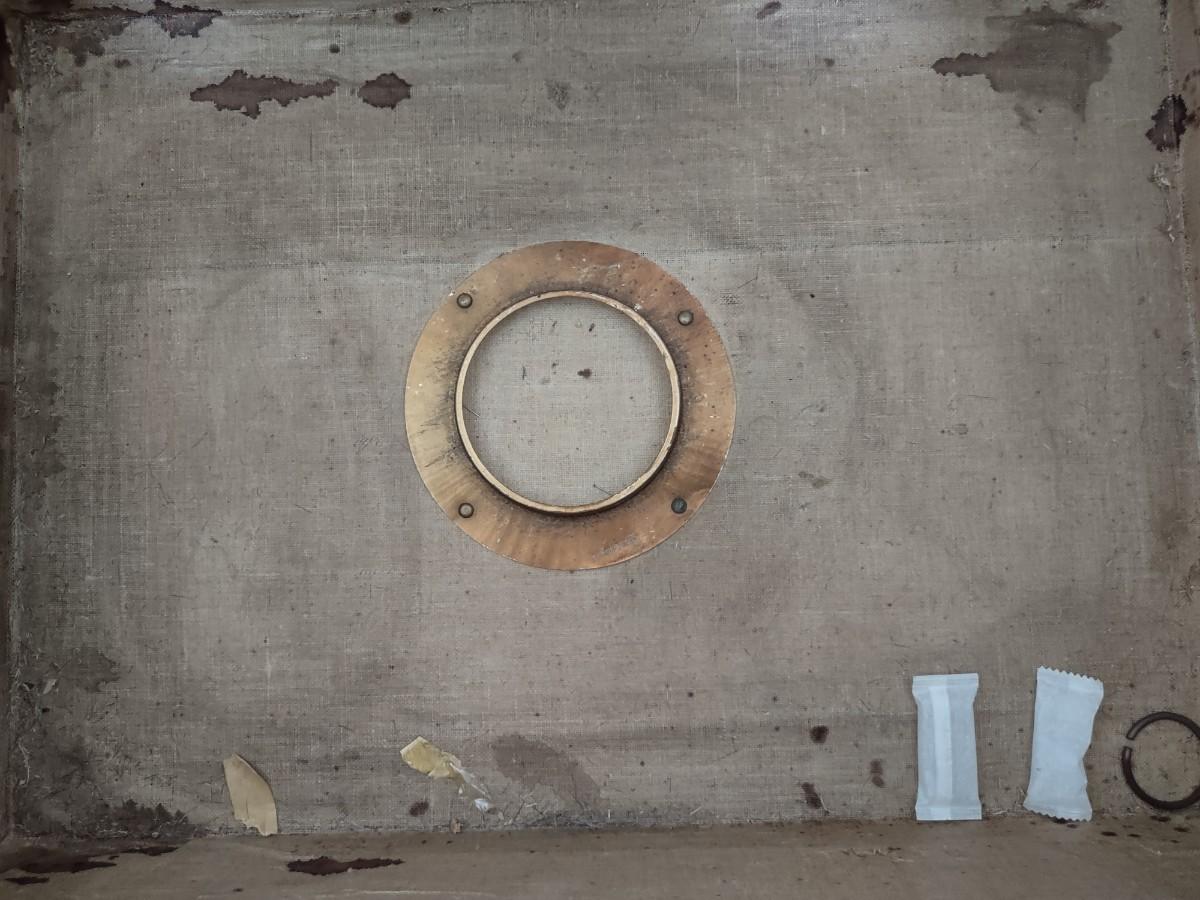 23x16x20 inches tall. This trunk is gorgeous and a piece of art in itself with the original antique labels of where it has traveled. We are unsure of the metal inserts but the patent brass rings are from 1897. Leather handles, sturdy and functional. Amazing piece to add to any room! Please see all pictures for content of the lot, condition of the lot, and measurements if taken. Pictures are the best representation of the items listed and items are untested unless indicated in description. Thank you for looking and have fun bidding!