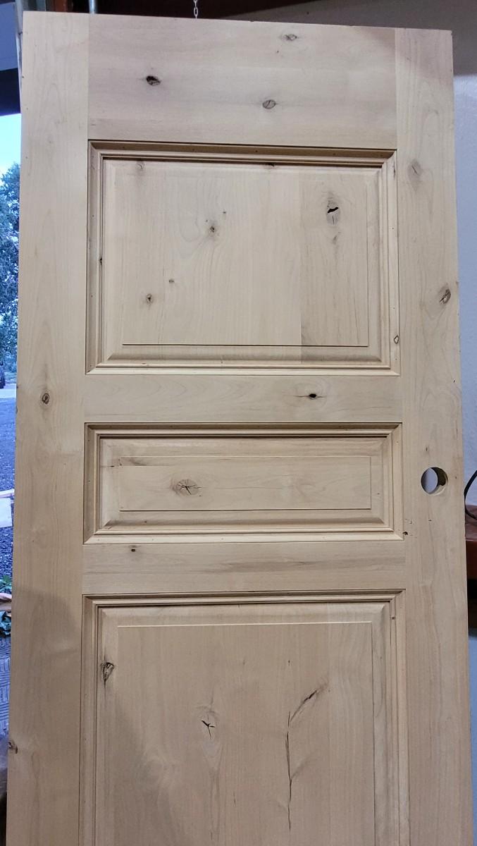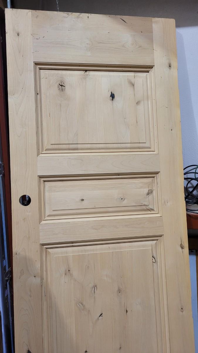 Lot 157: New Unused SOLID WOOD Home Design Entry Door w/ Precut Door Hole