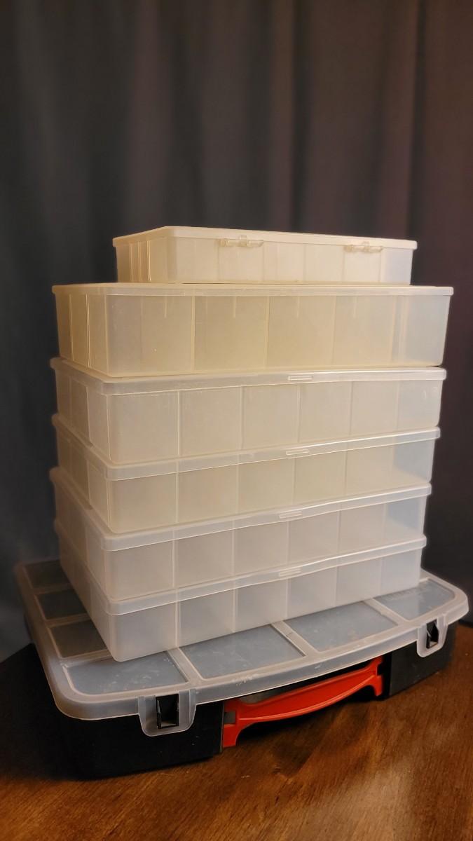 This lot features an assortment of previously used Sorting OR Organizing Containers. (1) 8.25" x 4.5", (5) measure about 7" x 10.5" and (1) 13" x 10"