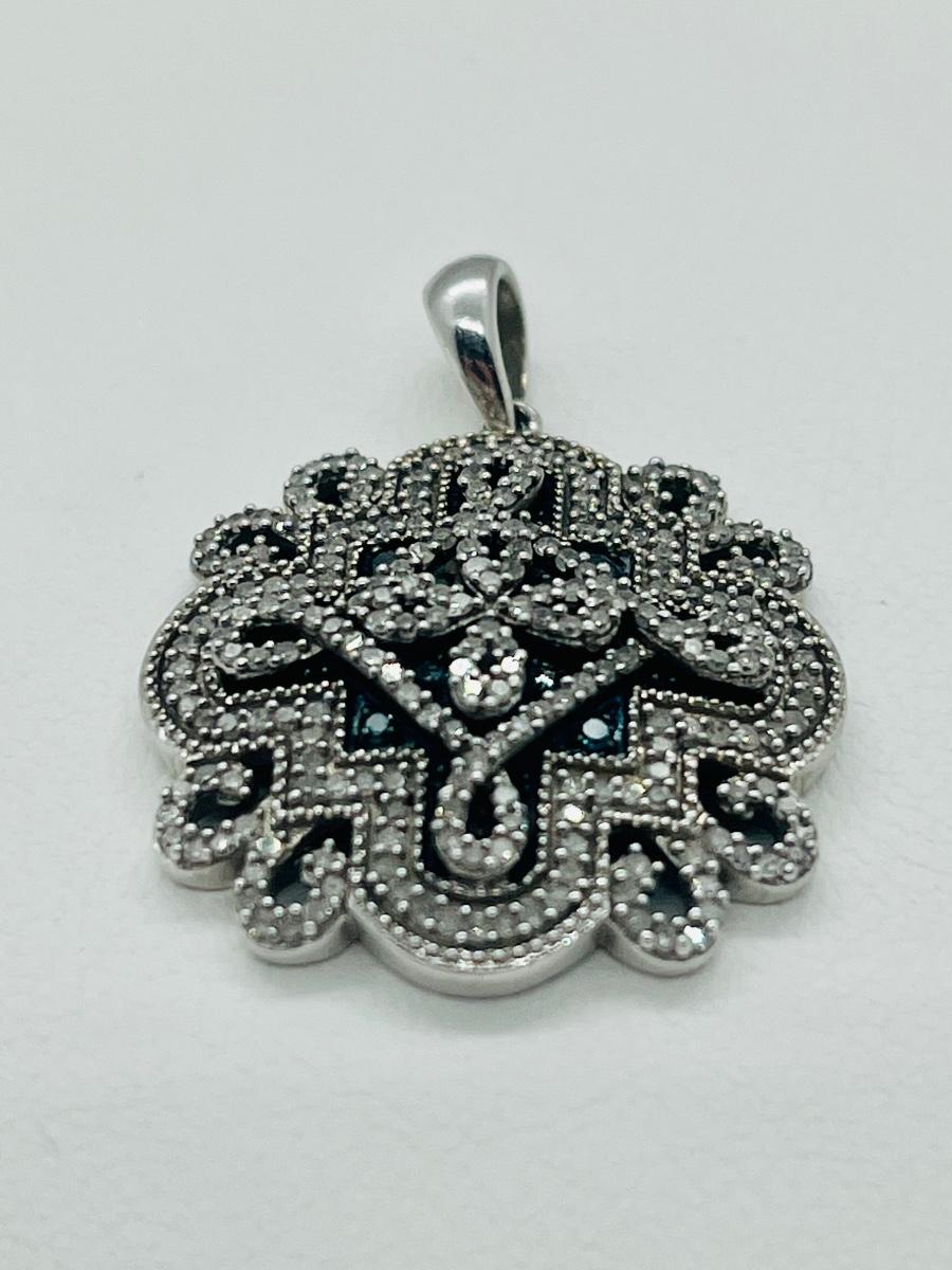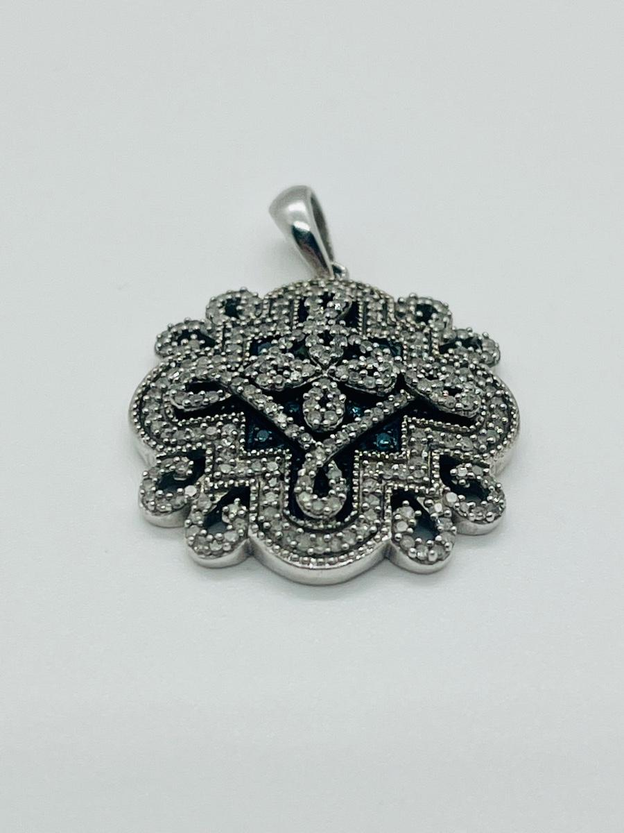 Lot 157: White & Blue Diamonds Set into Silver Pendant 925 SJ