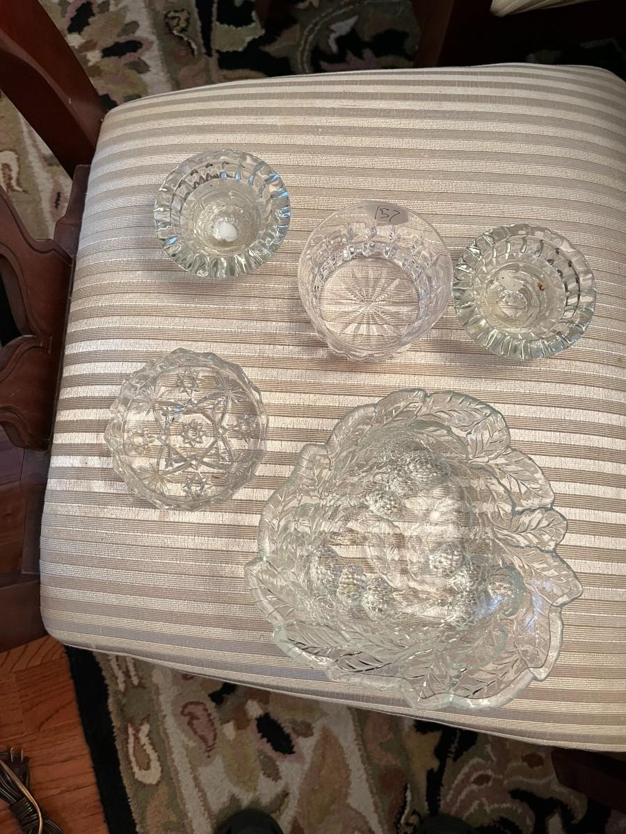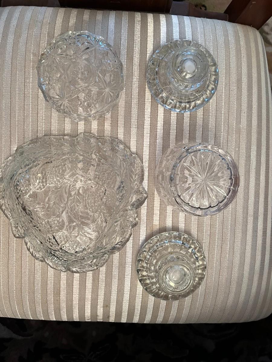 6 Pieces Glass including 2 Candlesticks, 1 bowl - Lot 157