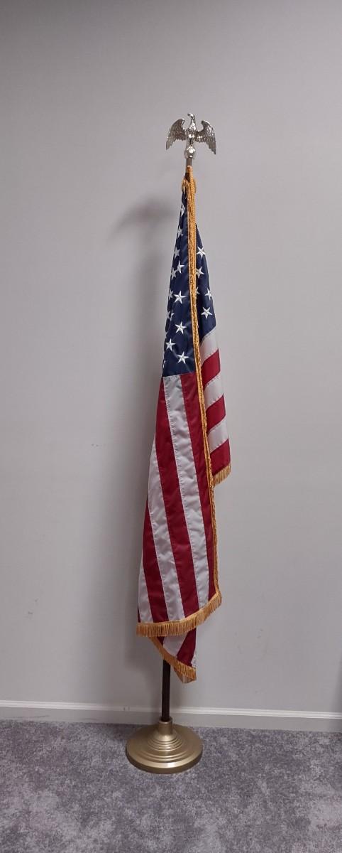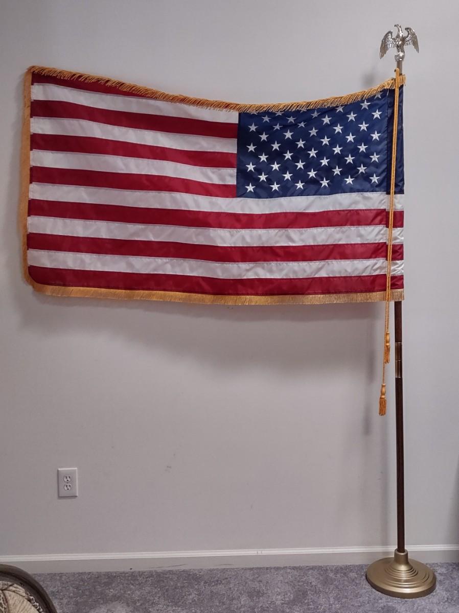 American Flag Pole With Stand. Please see all pictures as they are the best representation of the items. The pictures show condition, measurements if taken, and what is included in the lot. Due to the large amount that we photograph and the time frame, we are not always able to take measurements. All items unless noted, are pre-owned and have been used. If you purchased furniture, you must bring help. We do not allow one person to carry large furniture out on their own. Bring help, tools and a truck for the safety of our client’s homes, and your personal safety. Company policy. Thank you.