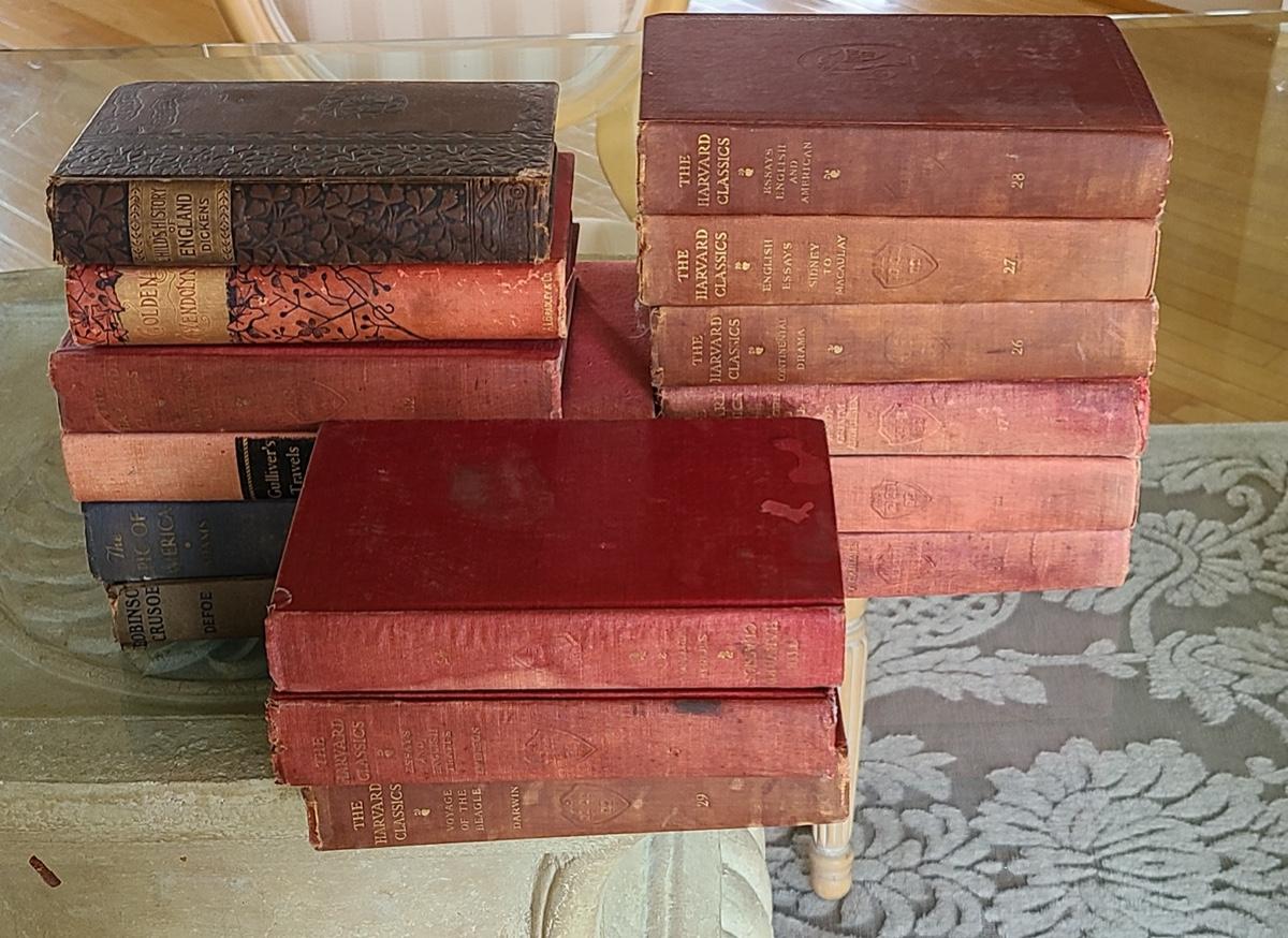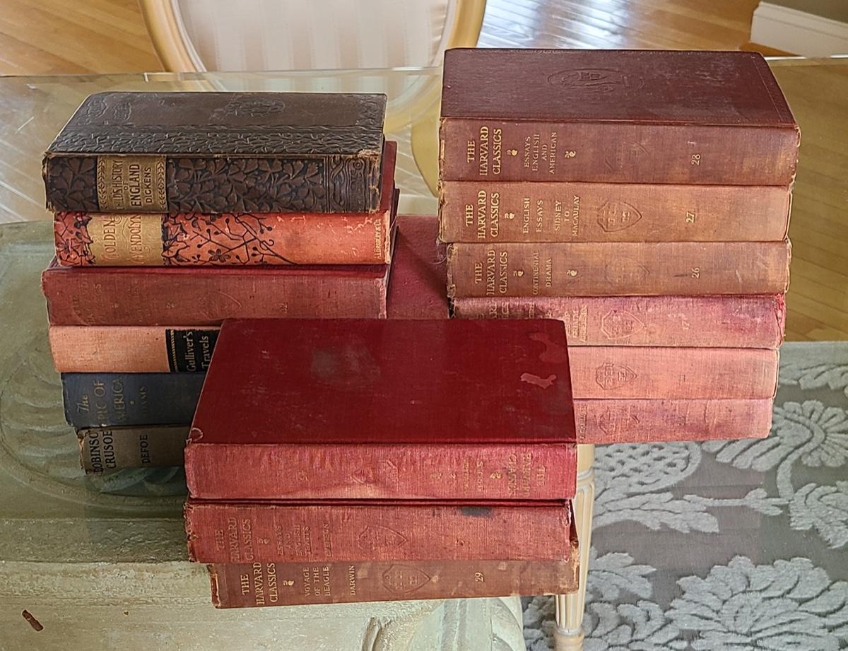 These books were used as decor in a home office, they do show wear and age, great pop of color anywhere in the home for staging and design. Please see all pictures for content of the lot, condition of the lot, and measurements if taken. Pictures are the best representation of the items listed and items are untested unless indicated in description. Thank you for looking and have fun bidding!
