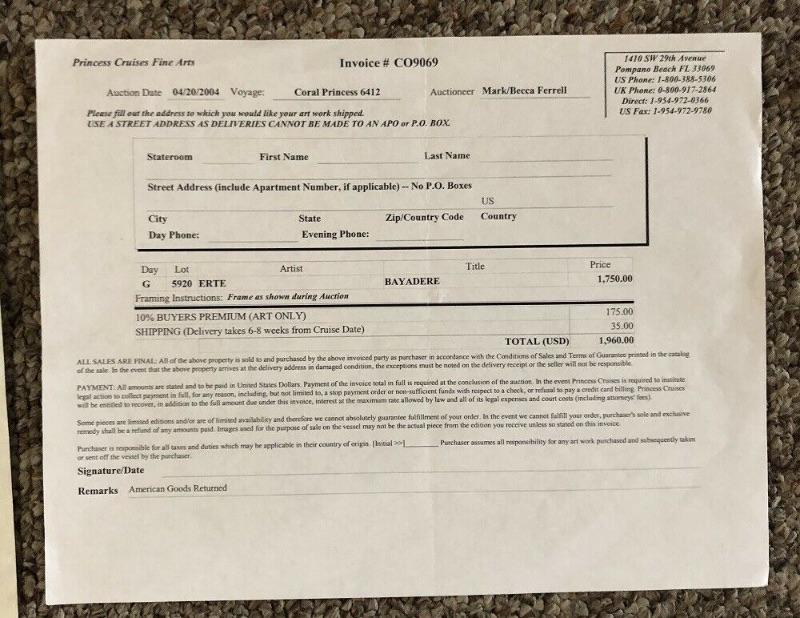 Lot 157. “Bayadere”, Erte, limited edition Serigraph, hand signed, 33” x 39” framed, Purchase date, 2004- -WAS $799““NOW $399.50