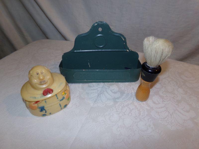 METAL BRUSH AND COMB HOLDER (HAS DING ON CORNER)