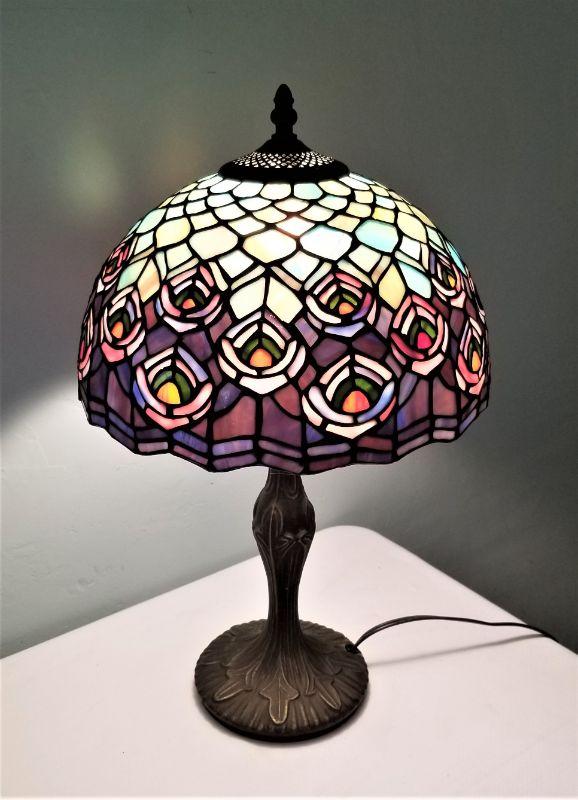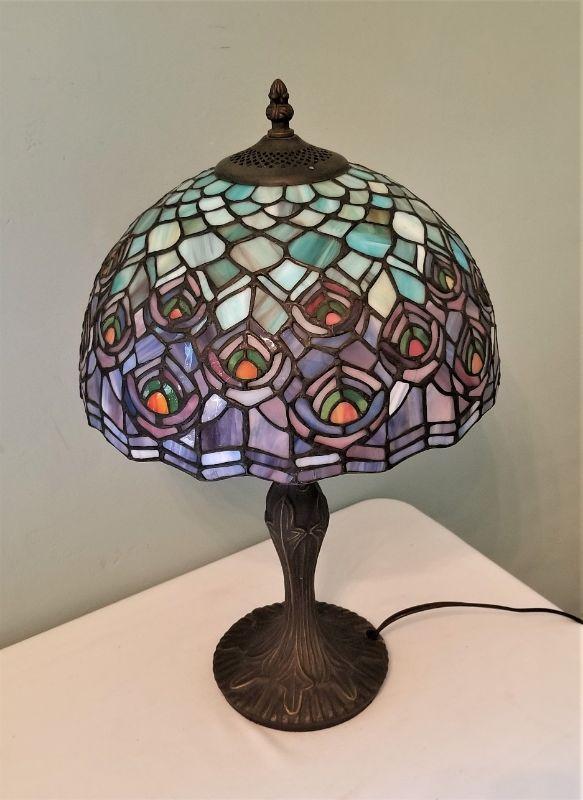 Lot #157 Contemporary Tiffany Style Table lamp "Peacock Feather" motif.