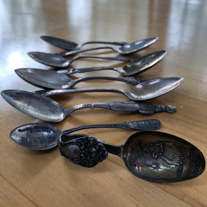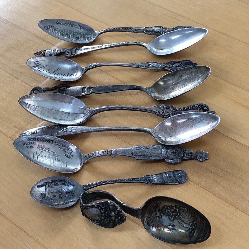 Compelling group of sterling collectible spoons. From around the world with this group of 9 spoons. Several seem pretty old. Shipping available.