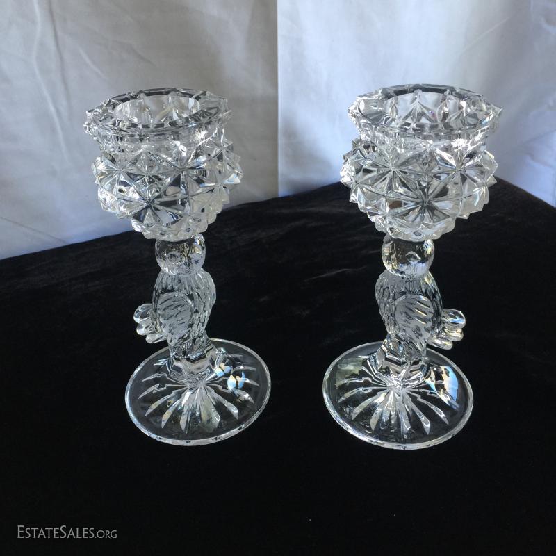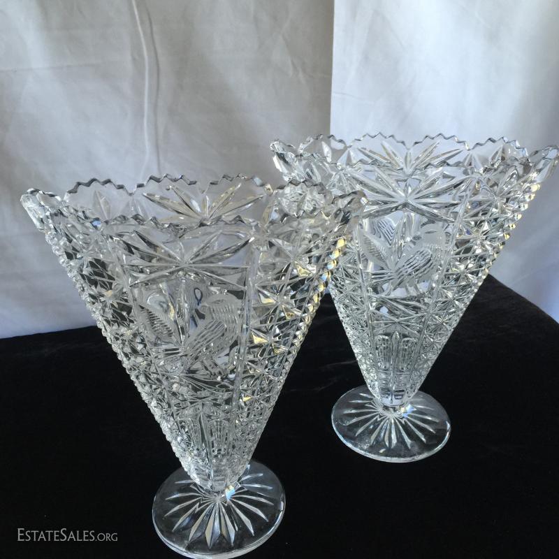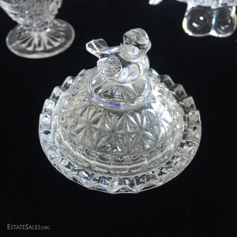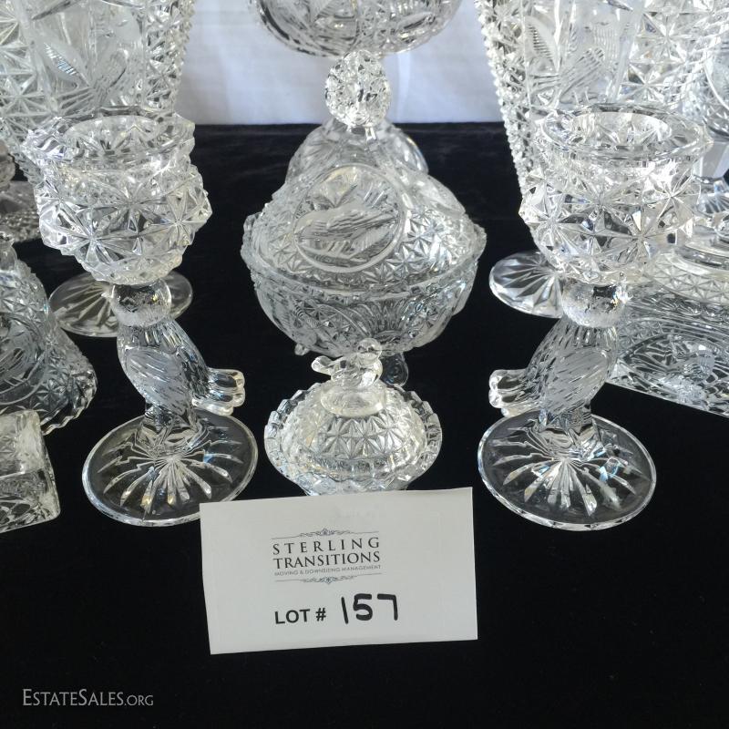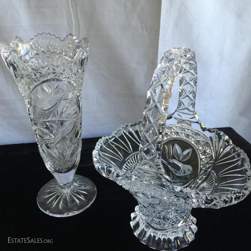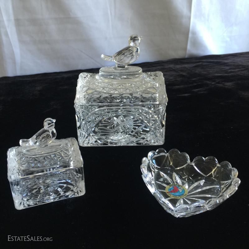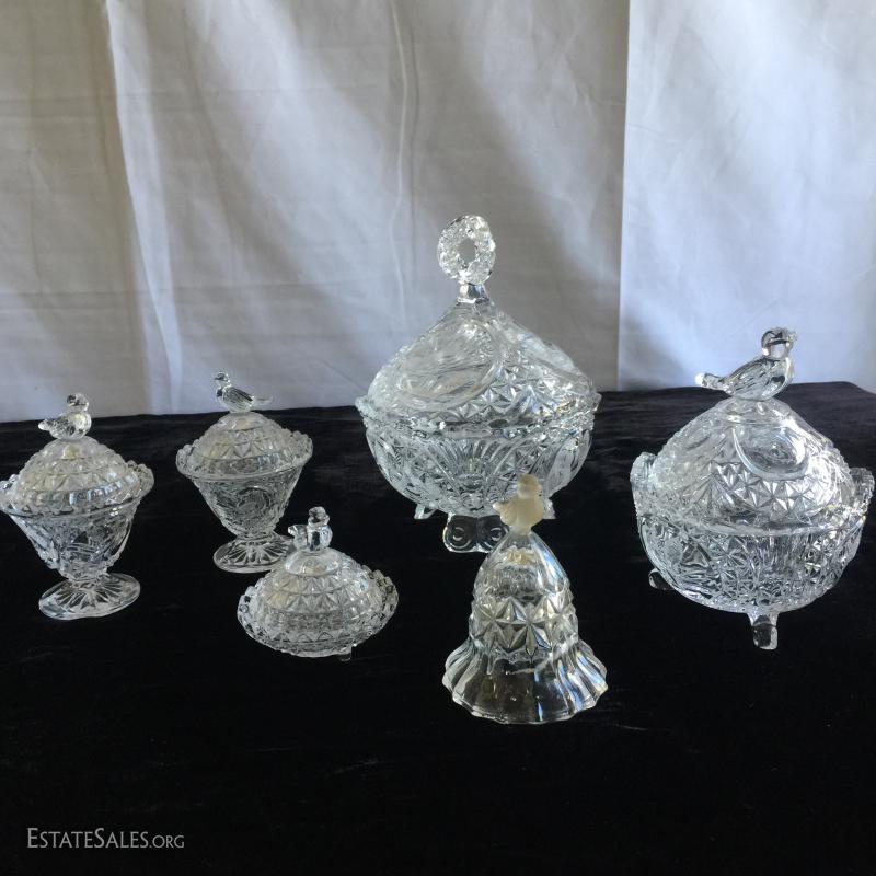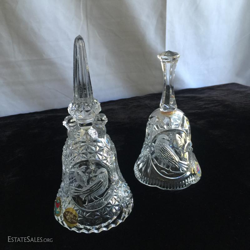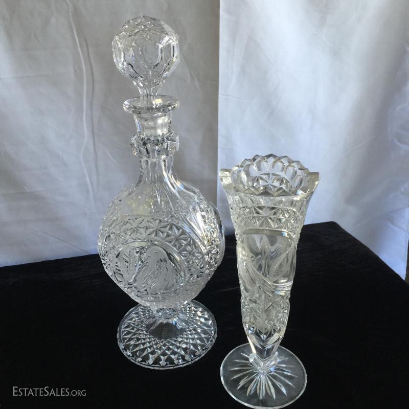 23 pieces and 9 lids/stoppers of clean cut Hofbauer lead crystal. Sizes range from 2.5" - 13.5"H.