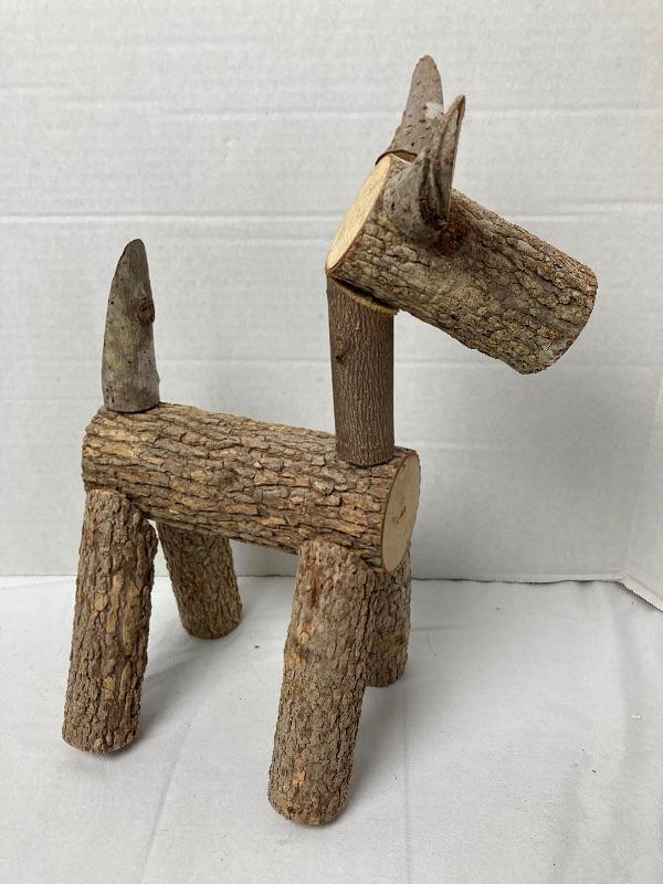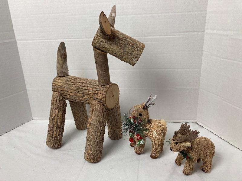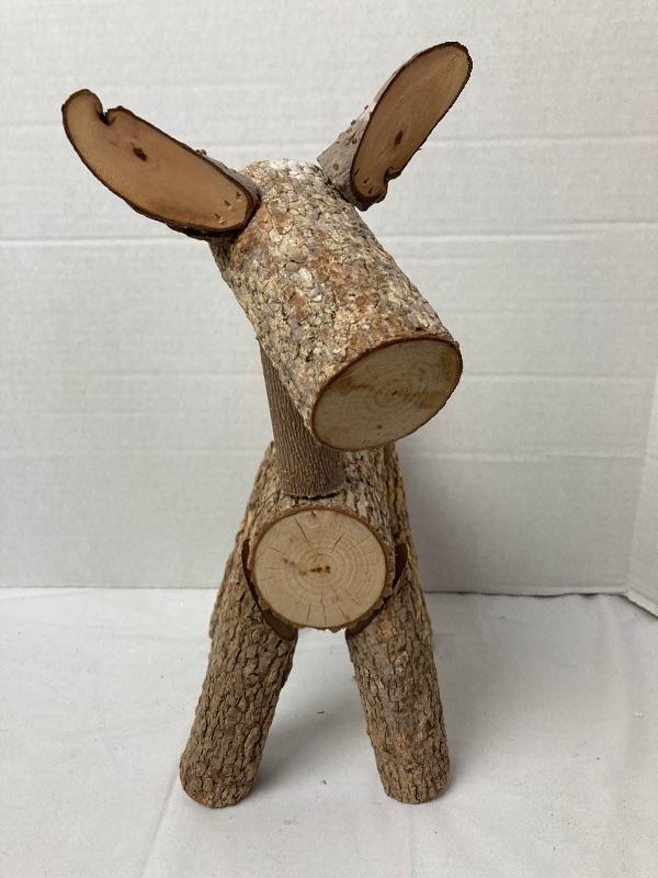 Deer made of logs measures 15-1/2” tall and 11” long and comes with two small deer
