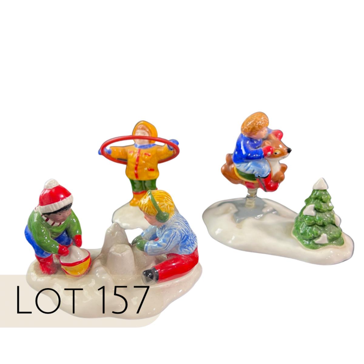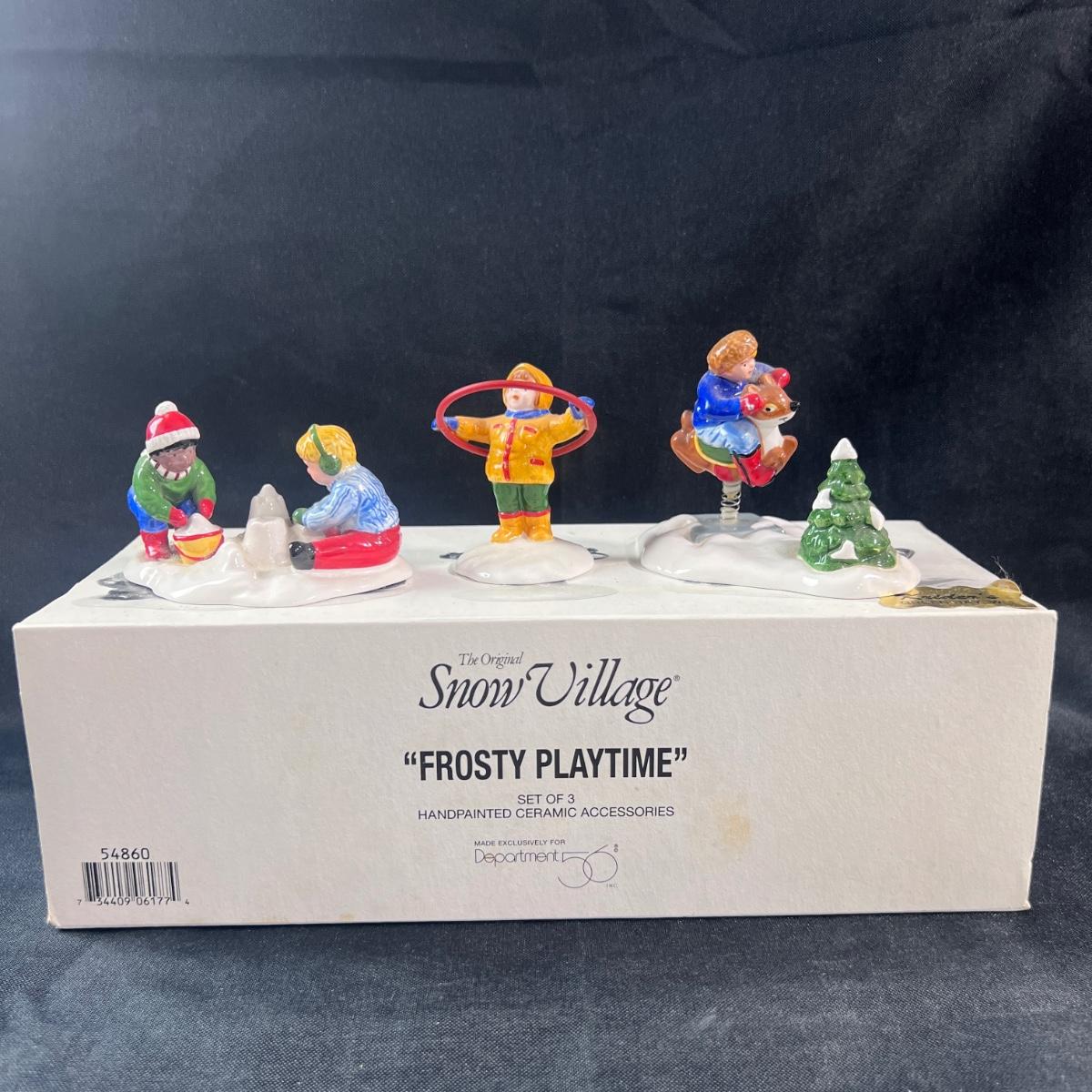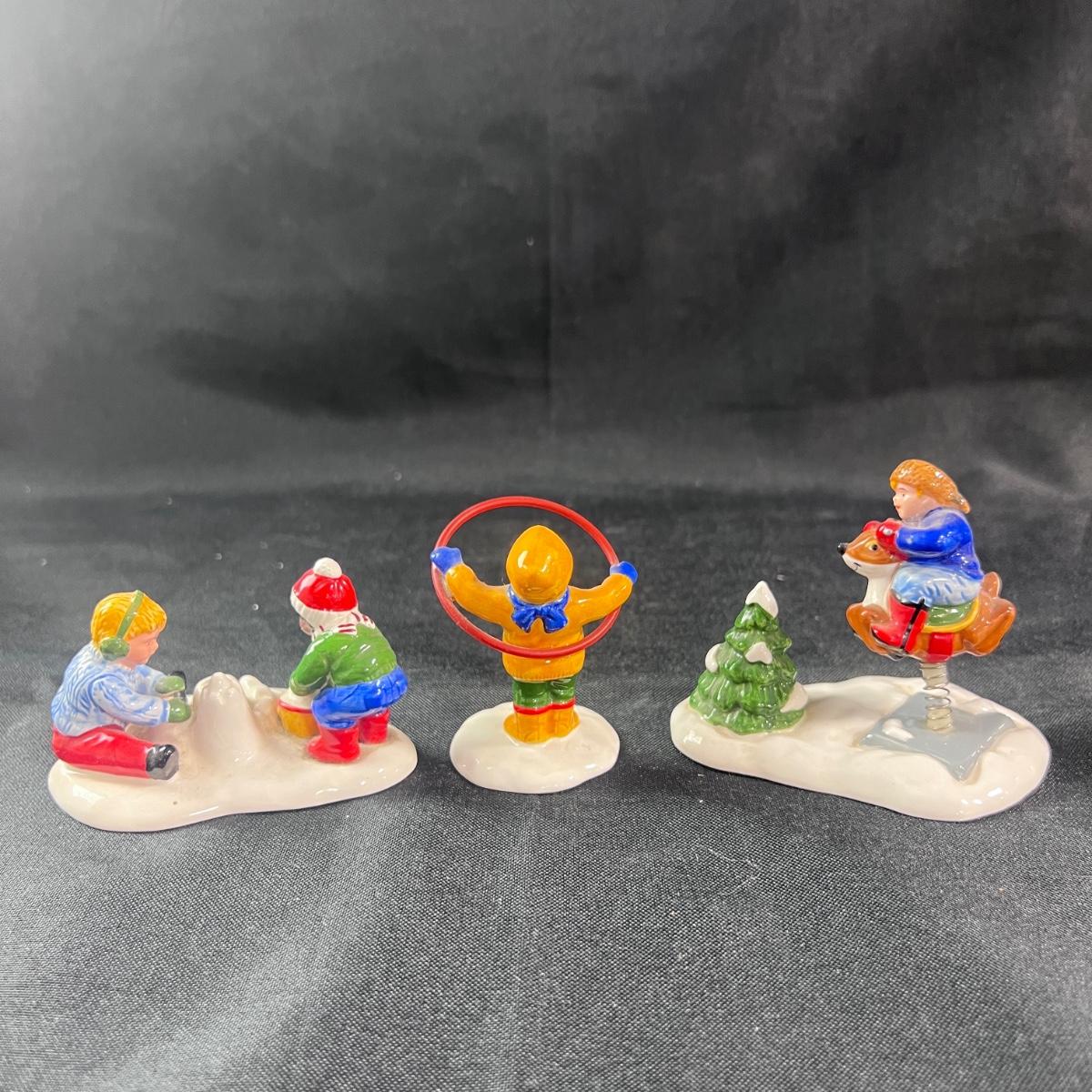 These Department 56 Snow Village children are so adorable! My mom has this trio as part of her collection, I’d never forget because the kid bobbles on his rid and the one with the hula-hoop is just iconic! Please see photos for details and condition. ::: Shipping is available on this lot. If you require shipping you must let us know at the close of the auction. We will coordinate with you after the item has been won. Shipping fees will include insurance up to or exceeding the value of all items being mailed. If you have any questions regarding this lot please contact the auctioneer either via this website, by direct email or by phone. PICK UP TIMES and other important information can be found in the TERMS and DESCRIPTION of the auction. Please take a look for pertinent information. Thanks! Any condition statement is given as a courtesy to a client, is an opinion, and should not be treated as a statement of fact. Reference to condition written, oral or within a condition report shall not be regarded as a full account of condition and may not include all defects, alterations, or restorations. Absence of a condition report does not imply a lot is flawless or lacking imperfections or damage. Katherine’s Auction & Appraisal Service shall have no responsibility for any error or omission. Returns shall not be accepted on the basis of condition.