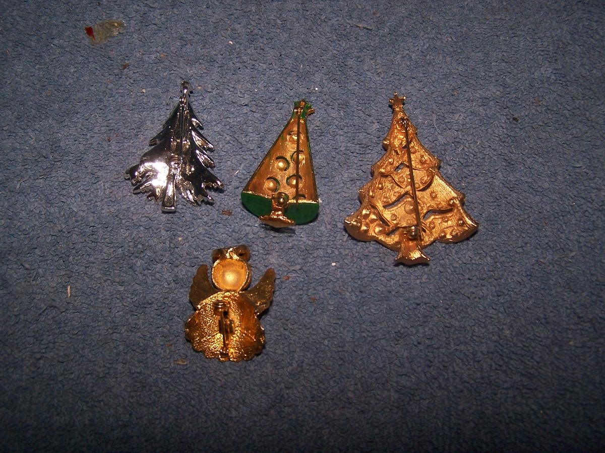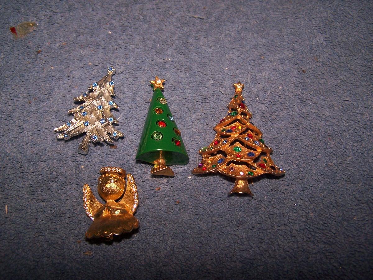 THESE ARE GREAT VINTAGE CHRISTMAS RHINESTONE PINS!!! UNMARKED.. GREEN TREE-2'' TALL.. SLIGHT WEAR..