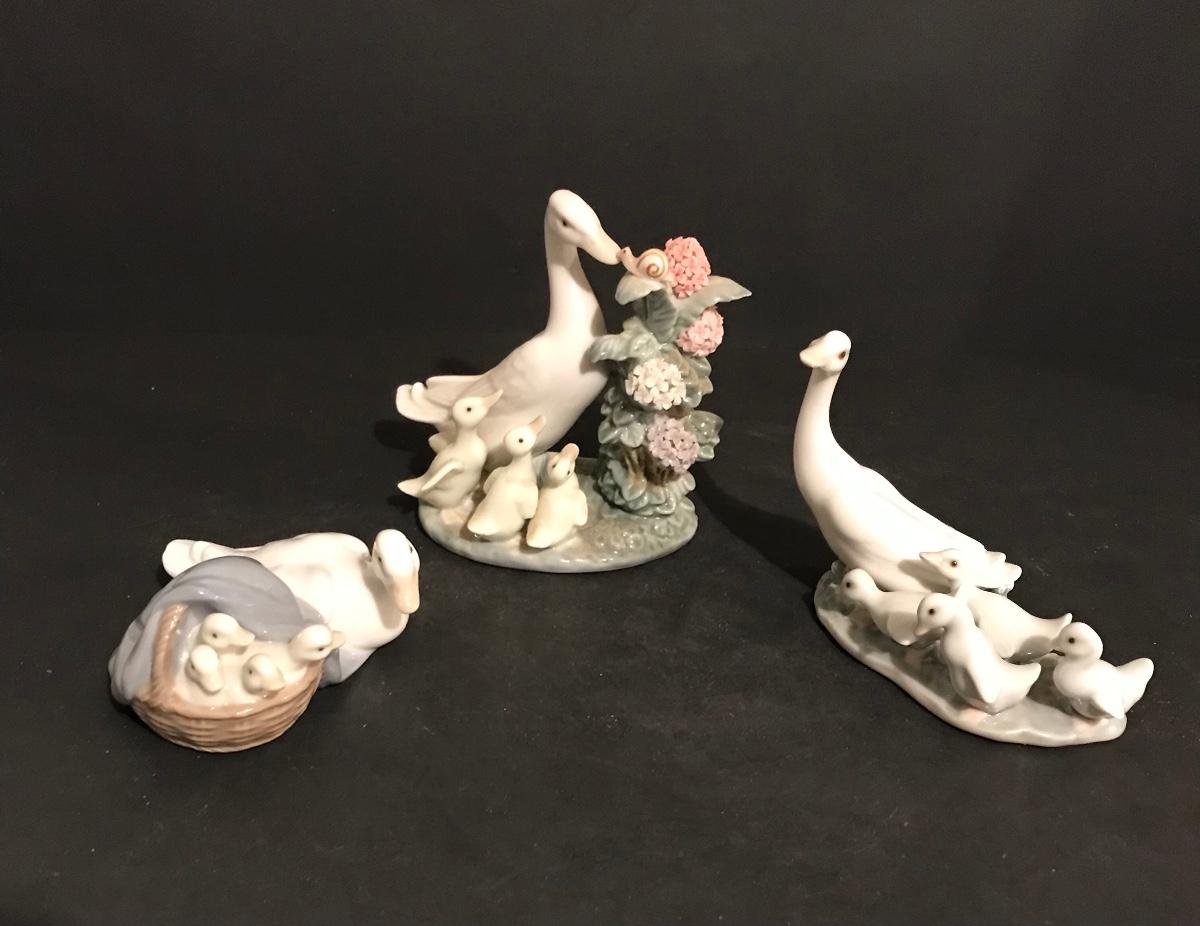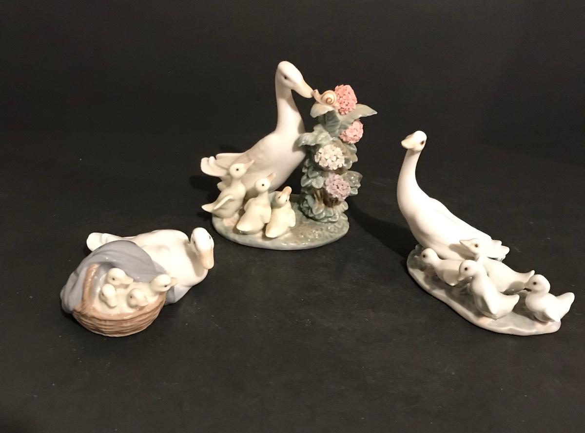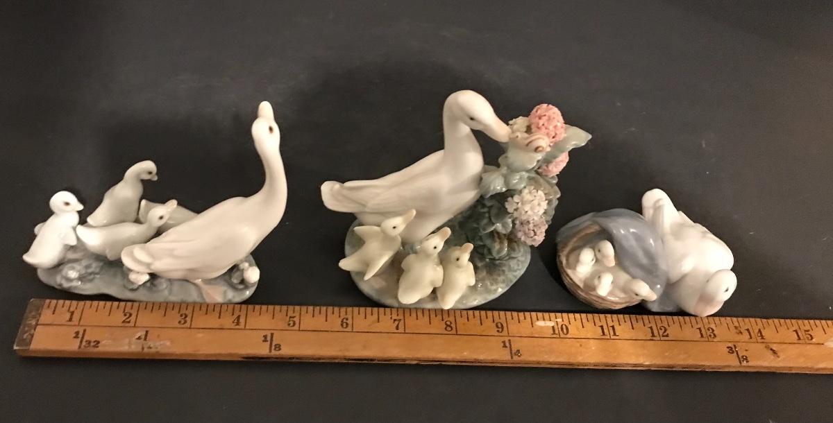 How Do You Do? #1439, Duck & Ducklings #4895 And Mother & Ducklings #1642. All Lladros are in excellent vintage condition without original boxes, except where noted. All items have been inspected and any damages or imperfections have been photographed and noted to the best of our knowledge and ability. It is the responsibility of the buyer to inspect all pictures, as they are the best representation of the items. The pictures show condition, measurements if taken, and what is included in the lot. Upon pickup, it is the responsibility of the buyer to inspect their items prior to leaving the premises. Once the items leave the premises, there will be no refunds or returns. Buyers are also responsible for bringing their own boxes and packing materials for their items. Thank you.