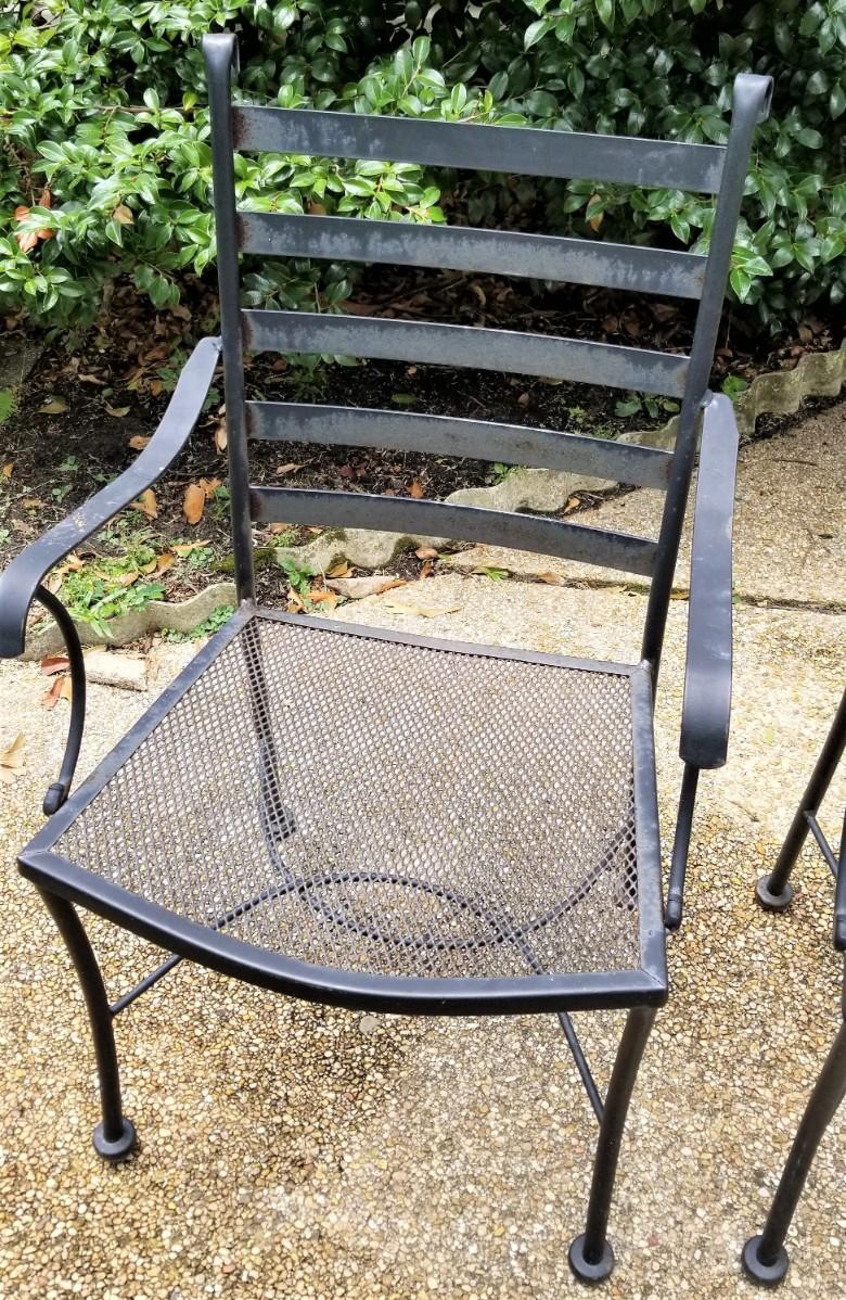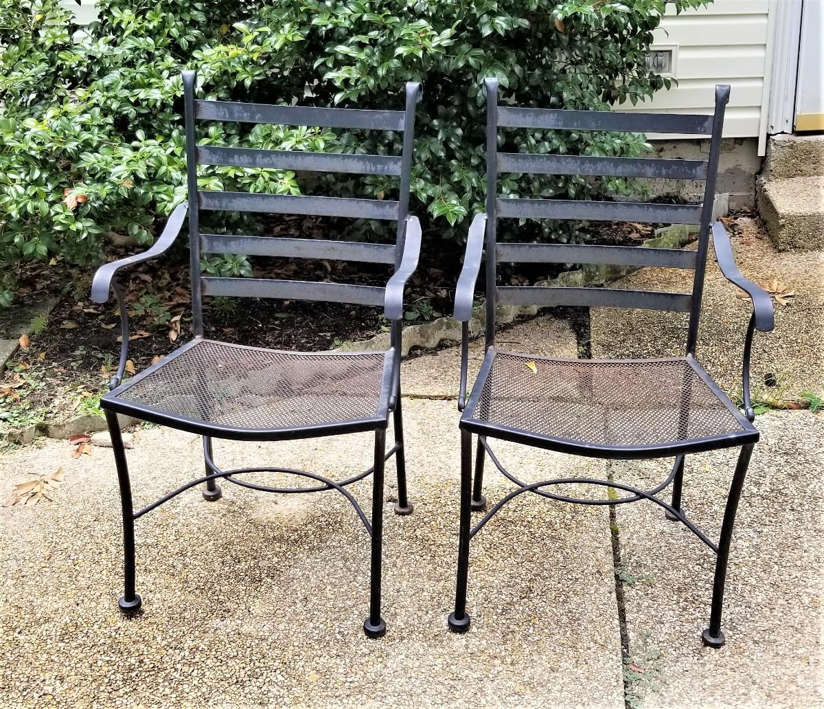 Two good chairs here - perfect for your deck or patio - gently used, minor rust. Each is 34.5" tall, 21.5" across, and 20.5" deep. Sturdy and comfortable outdoor furniture.