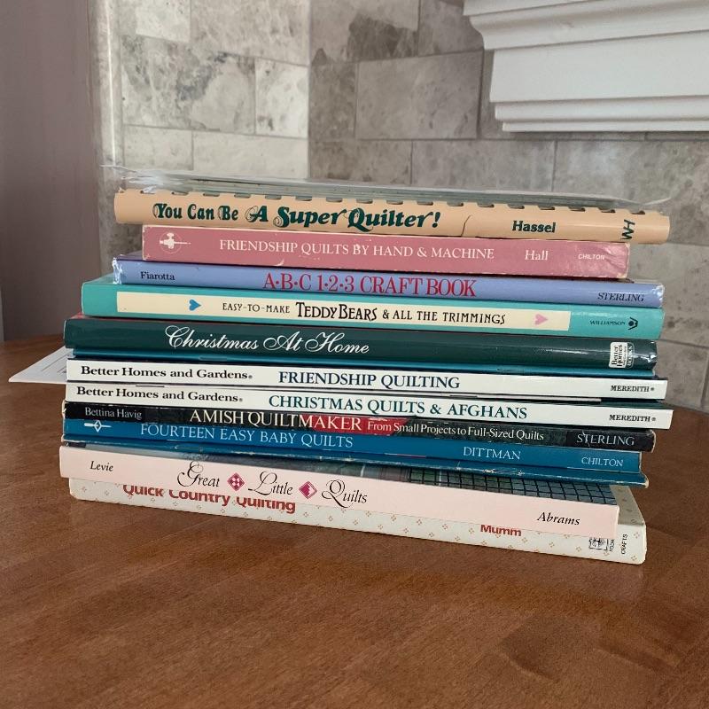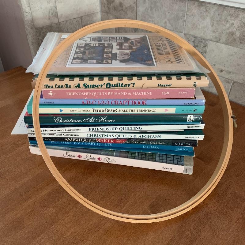 In this lot you’ll find various crafting and quilting books. There are a few hardcover books and some paperbacks as well. Examples of books included are: Easy to Make Teddy Bears, Friendship Quilts by Hand and Machine, Amish Quiltmaker, Quick Country Quilts, ABC 123 Craft Book, and more! There is also a 12” wooden quilting hoop. Local pickup only.